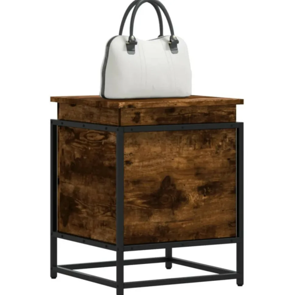 Cette boîte de rangement est une solution de rangement idéale et un excellent supplément décoratif à votre espace de vie. Matériau stable et durable : le bois d’ingénierie est un matériau durable et stable dont la surface lisse résiste à l’humidité, à la déformation et au fendillement, ce qui en fait un choix fiable pour une grande variété de projets.Cadre stable et durable : le cadre en métal de la boîte à couvertures rehausse votre intérieur d’un style industriel et offre une durabilité, une stabilité et une résistance à la corrosion exceptionnelles.Grand espace de rangement : ce coffre de rangement offre suffisamment d’espace pour garder vos vêtements, couvertures, jouets, coussins et autres objets essentiels du quotidien bien organisés.Utilisation polyvalente : avec un dessus stable, le coffre à jouets offre une surface sécurisée pour placer des collations, des boissons, des vases, des bols de fruits ou d’autres objets décoratifs. Cette boîte de rangement peut également être utilisée comme table basse, bout de canapé, table d’appoint, etc. Attention :Pour éviter qu’il ne bascule, ce produit doit être utilisé avec le dispositif de fixation murale fourni. Couleur : chêne fuméMatériau : bois d’ingénierie, métalDimensions : 40 x 40 x 51,5 cm (l x P x H)Capacité de charge de l’étagère supérieure : 30 kgCapacité de charge totale : 40 kgForme : carréAssemblage requis : ouiLegal Documents:Vous trouverez ici plus de détails sur la façon d’empêcher vos meubles de basculerCouleur : chêne fuméMatériau : bois d’ingénierie, métalDimensions : 40 x 40 x 51,5 cm (l x P x H)Capacité de charge de l’étagère supérieure : 30 kgCapacité de charge totale : 40 kgForme : carréAssemblage requis : ouiLegal Documents:Vous trouverez ici plus de détails sur la façon d’empêcher vos meubles de basculer