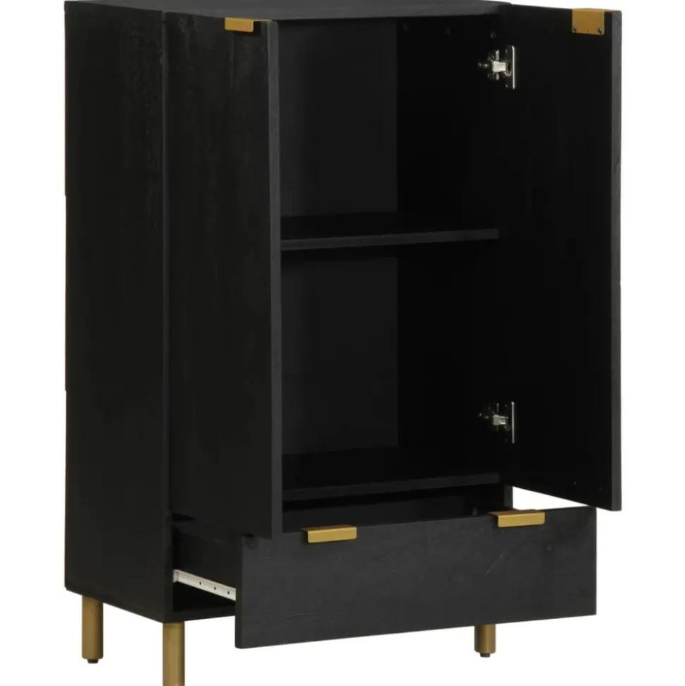 - Matériau : bois d’ingénierie, bois de manguier massif, laiton