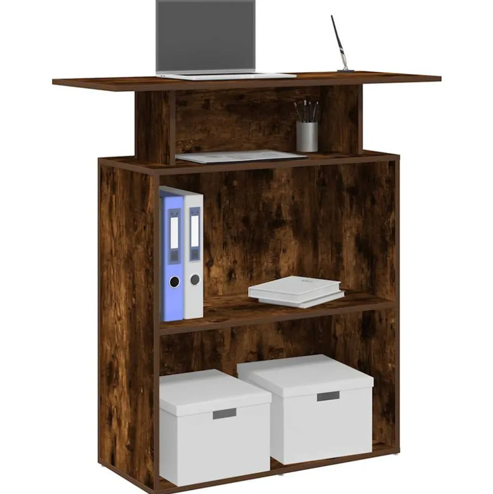 Profitez d’interactions fluides, d’un grand espace de rangement et d’un design polyvalent avec ce bureau de réception doté d’un comptoir intégré, le rendant parfait pour divers environnements ! Matériau stable et durable : le bois d’ingénierie est un matériau durable et stable dont la surface lisse résiste à l’humidité, à la déformation et au fendillement, ce qui en fait un choix fiable pour une grande variété de projets.Conception réfléchie : les comptoirs hauts et les panneaux latéraux du comptoir de réception assurent des interactions discrètes, offrant un équilibre entre fonctionnalité et intimité pour le personnel et les visiteurs.Solutions de rangement intégrées : la réception dispose d’une étagère intégrée qui offre suffisamment d’espace pour ranger des fournitures de bureau, des documents et des effets personnels, contribuant ainsi à garder l’espace de travail organisé.Application polyvalente : ce comptoir de caisse est parfait pour une variété d’environnements, y compris les bureaux d’entreprise, les halls d’hôtel, les cliniques médicales et les salons de beauté, répondant à divers besoins professionnels.Installation facile : des instructions claires et un processus d’assemblage simple rendent ce comptoir de réception facile à installer rapidement et sans effort. Attention :Pour éviter qu’il ne bascule, ce produit doit être utilisé avec le dispositif de fixation murale fourni. Bon à savoir :Les vis et les chevilles pour l’intérieur du mur ne sont pas incluses. Recherchez et utilisez des vis et des chevilles adaptées à vos murs. Si vous n’êtes pas sûr, demandez conseil à un professionnel. Lisez et suivez attentivement chaque étape des instructions.