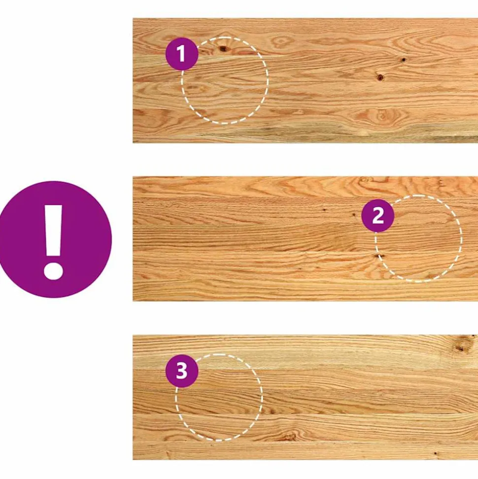 - Matériau : bois de chêne massif, finement poncé avec un vernis léger