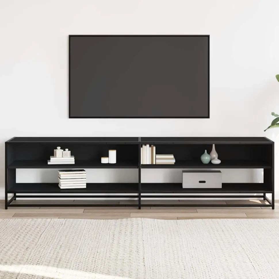 Ce meuble TV avec un grand espace de rangement est un complément pratique et attrayant pour votre salon ou votre chambre à coucher. Matériau stable et durable : le bois d’ingénierie est un matériau durable et stable dont la surface lisse résiste à l’humidité, à la déformation et au fendillement, ce qui en fait un choix fiable pour une grande variété de projets.Cadre stable et durable : le cadre en métal du meuble TV rehausse votre intérieur d’un style industriel et offre une durabilité, une stabilité et une résistance à la corrosion exceptionnelles.Grand espace de rangement : ce meuble TV offre un grand espace de rangement pour garder vos magazines, livres, DVD et appareils multimédias bien organisés et à portée de main.Dessus stable et robuste : le dessus robuste est idéal pour placer votre téléviseur et vos systèmes stéréo ou certains objets décoratifs tels que des vases ou des plantes en pot.Facile à entretenir : le meuble TV est facile à nettoyer à l’aide d’un chiffon humide et nécessite peu d’entretien.