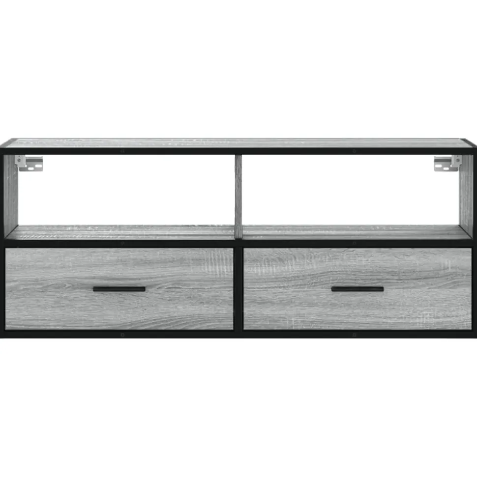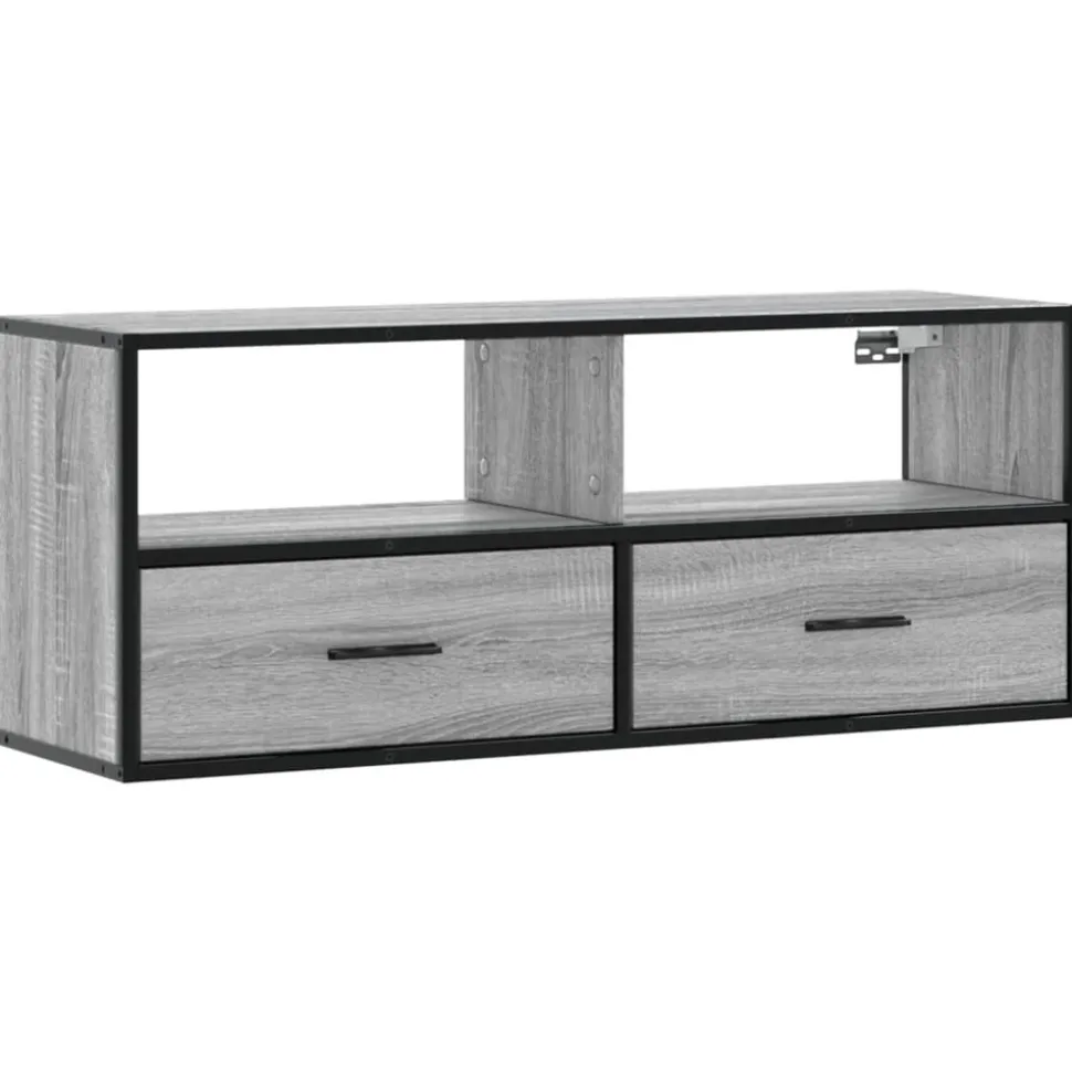 Avec un design à la fois tendance et pratique, ce meuble TV robuste deviendra un point central de votre pièce. Cadre stable et durable : le cadre en métal du meuble TV rehausse votre intérieur d’un style industriel et offre une durabilité, une stabilité et une résistance à la corrosion exceptionnelles.Matériau stable et durable : le bois d’ingénierie est un matériau durable et stable dont la surface lisse résiste à l’humidité, à la déformation et au fendillement, ce qui en fait un choix fiable pour une grande variété de projets.Grand espace de rangement : le meuble TV offre un grand espace de rangement pour garder vos lecteurs DVD, récepteurs, disques et autres petits objets bien organisés et à portée de main.Fonction murale : ce meuble multimédia peut être fixé au mur, vous pouvez facilement l’accrocher au mur sans occuper d’espace au sol. Bon à savoir :Les vis et les chevilles pour l’intérieur du mur ne sont pas incluses. Nous vous conseillons de trouver et d’utiliser des vis et des chevilles adaptées spécifiquement à vos murs. Si vous n’êtes pas sûr, vous pouvez consulter un professionnel. Veuillez lire et suivre chaque étape des instructions.
