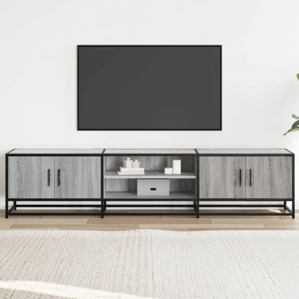 Ce meuble TV avec un grand espace de rangement est un complément pratique et attrayant pour votre salon ou votre chambre à coucher. Matériau stable et durable : le bois d’ingénierie est un matériau durable et stable dont la surface lisse résiste à l’humidité, à la déformation et au fendillement, ce qui en fait un choix fiable pour une grande variété de projets.Cadre stable et durable : le cadre en métal du meuble TV rehausse votre intérieur d’un style industriel et offre une durabilité, une stabilité et une résistance à la corrosion exceptionnelles.Grand espace de rangement : ce meuble TV offre un grand espace de rangement pour garder vos magazines, livres, DVD et appareils multimédias bien organisés et à portée de main.Dessus stable et robuste : le dessus robuste est idéal pour placer votre téléviseur et vos systèmes stéréo ou certains objets décoratifs tels que des vases ou des plantes en pot.Facile à entretenir : le meuble TV est facile à nettoyer à l’aide d’un chiffon humide et nécessite peu d’entretien.