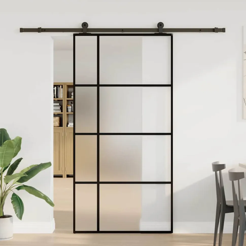 Ajoutez instantanément une touche de style moderne à ta maison avec cette porte coulissante. C’est la solution idéale pour une ouverture peu encombrante. Matériau durable : grâce à sa structure intelligente, le verre trempé est plus solide et plus durable que tout autre verre. Le verre trempé est connu pour résister aux chocs violents, aux rayures, aux coups, etc.Cadre stable et durable : l’aluminium est à la fois léger et durable, avec une excellente résistance à la corrosion grâce à sa couche d’oxyde auto-protectrice. Cette porte en aluminium est conçue pour durer, ce qui en fait un choix idéal pour quiconque recherche une porte robuste.Glissement silencieux et en douceur : grâce aux roulements internes, vos porte coulissante intérieure glissera doucement et silencieusement. Des arrêts de porte sont également inclus pour empêcher le déraillement des rouleaux, tandis que les joints en caoutchouc amortiront la bosse des rouleaux et réduiront le bruit.Bonne intimité : le panneau de la porte est en verre mat, ce qui offre une grande protection de l’intimité pour votre maison et pour votre bureau.Design élancé : le design fin du cadre donne à la porte coulissante en verre un aspect moderne et minimaliste.