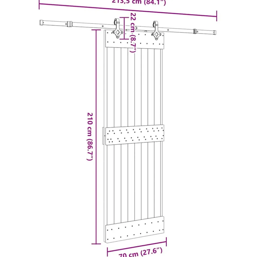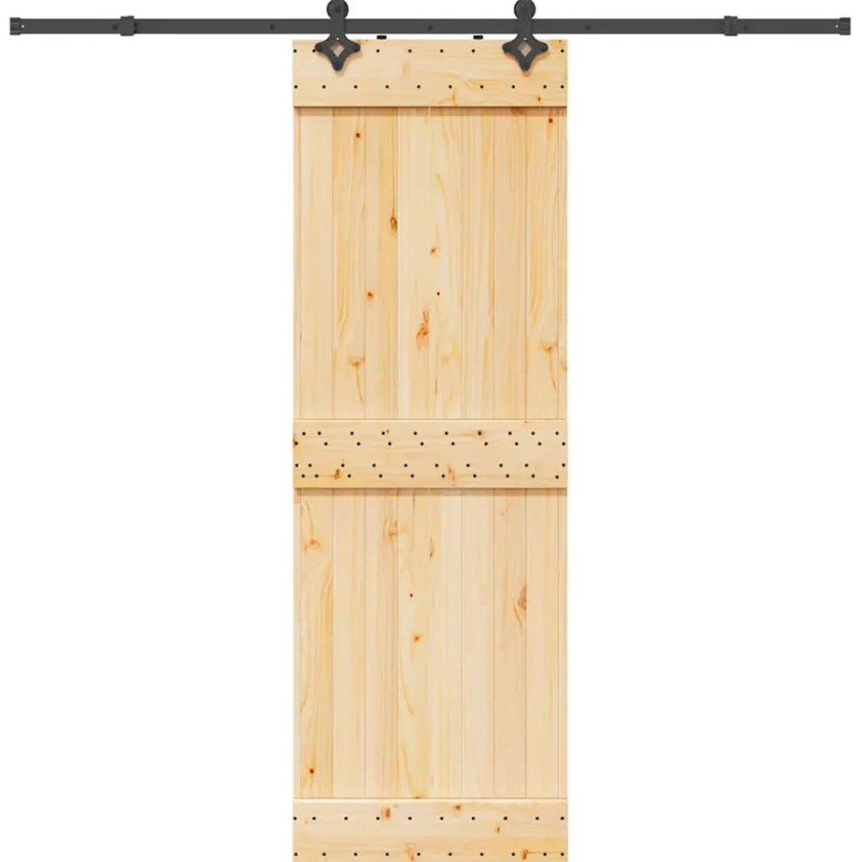Cette porte coulissante en bois de pin massif est conçue pour enrichir l’entrée de votre maison et assurer une meilleure sécurité pour votre maison. Bois de pin massif : la porte intérieure est fabriquée en bois de pin massif. Le bois de pin solide est un beau matériau naturel. Le bois de pin a un grain droit et les nœuds donnent au matériau son aspect caractéristique et rustique.Rails coulissants robustes : l’acier est un matériau exceptionnellement dur et résistant. Il offre robustesse et stabilité. Le revêtement en poudre sur l’acier crée une couche protectrice contre l’usure. Fabriqués en acier enduit de poudre, les rails coulissants sont robustes, durables et résistants.Glissement silencieux et en douceur : grâce aux roulements internes, vos porte coulissante intérieure glissera doucement et silencieusement. Des arrêts de porte sont également inclus pour empêcher le déraillement des rouleaux, tandis que les joints en caoutchouc amortiront la bosse des rouleaux et réduiront le bruit.Conception permettant de gagner de l’espace : cette porte coulissante en bois économise de l’espace et semble plus spacieuse. C’est le premier choix pour une conception de maison moderne simple et d’ambiance.Nombreuses applications : la porte de grange coulissante peut être installée aussi bien sur des murs en bois que sur des murs en béton. Elle est idéale pour une utilisation dans la chambre à coucher, la cuisine, la grange, le garage, etc.