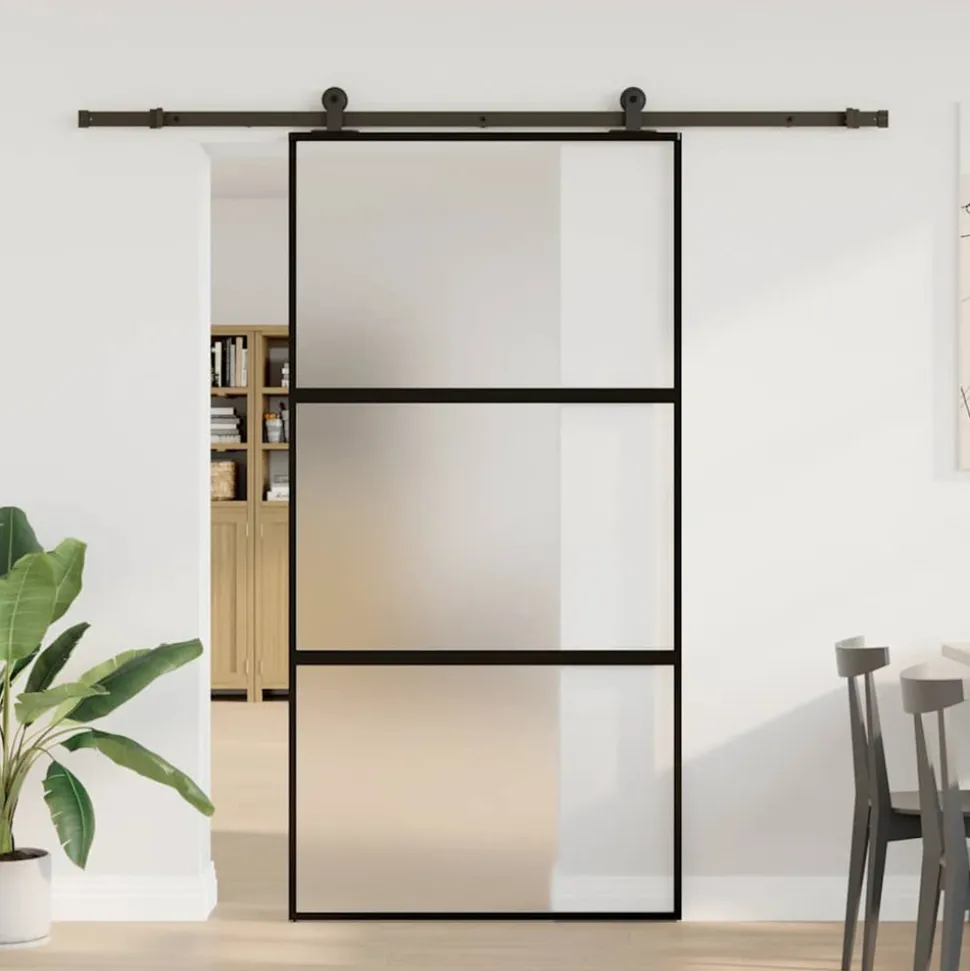Ajoutez instantanément une touche de style moderne à ta maison avec cette porte coulissante. C’est la solution idéale pour une ouverture peu encombrante. Matériau durable : grâce à sa structure intelligente, le verre trempé est plus solide et plus durable que tout autre verre. Le verre trempé est connu pour résister aux chocs violents, aux rayures, aux coups, etc.Cadre stable et durable : l’aluminium est à la fois léger et durable, avec une excellente résistance à la corrosion grâce à sa couche d’oxyde auto-protectrice. Cette porte en aluminium est conçue pour durer, ce qui en fait un choix idéal pour quiconque recherche une porte robuste.Glissement silencieux et en douceur : grâce aux roulements internes, vos porte coulissante intérieure glissera doucement et silencieusement. Des arrêts de porte sont également inclus pour empêcher le déraillement des rouleaux, tandis que les joints en caoutchouc amortiront la bosse des rouleaux et réduiront le bruit.Bonne intimité : le panneau de la porte est en verre mat, ce qui offre une grande protection de l’intimité pour votre maison et pour votre bureau.Design élancé : le design fin du cadre donne à la porte coulissante en verre un aspect moderne et minimaliste.