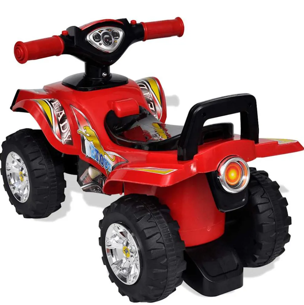 Ce quad à chevaucher n’est pas qu’un jouet ! Les enfants adoreront le conduire et amélioreront leur coordination de manière ludique. Il dispose d’un siège confortable avec rangement en dessous et d’un guidon doté d’un klaxon. Le rangement sous le siège fournit amplement d’espace pour ranger les bibelots. Le son et la lumière du quad le rendent plus réaliste et attrayant pour les enfants. Grâce au châssis robuste, ce quad est solide et stable, et chaque composant, conçu avec précision est orienté vers la sécurité de votre enfant. Il est adapté pour les enfants âgés de 12 à 36 mois. Remarque: Ce quad est alimenté manuellement, avec des effets sonores et lumineux qui nécessitent des piles AA de 1,5 V (non incluses). La livraison inclut uniquement le quad.