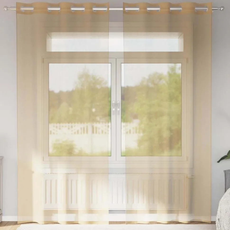 Profitez d’une pièce bien éclairée sans éblouissement excessif avec ces rideaux en voile. Matériau durable : le rideau est composé à 100 % de polyester, ce qui le rend durable et résistant.Conception semi-transparente : le rideau en filet permet à l’air frais de circuler et bloque la lumière du soleil dans une certaine mesure, offrant une sensation de confort tout en protégeant votre espace des regards indiscrets.Œillets supérieurs faciles à accrocher : le panneau de rideau est conçu avec 8 œillets sur le dessus, ce qui rend l’installation simple et permet un mouvement fluide sur les tringles à rideaux.Utilisation polyvalente : le rideau transparent est parfait pour être superposé avec des rideaux plus lourds ou utilisé seul pour un look frais et minimaliste.Lavable : le rideau est lavable à basse température, ce qui le rend facile à entretenir. Bon à savoir :La tringle à rideau n’est pas incluse dans la livraison.