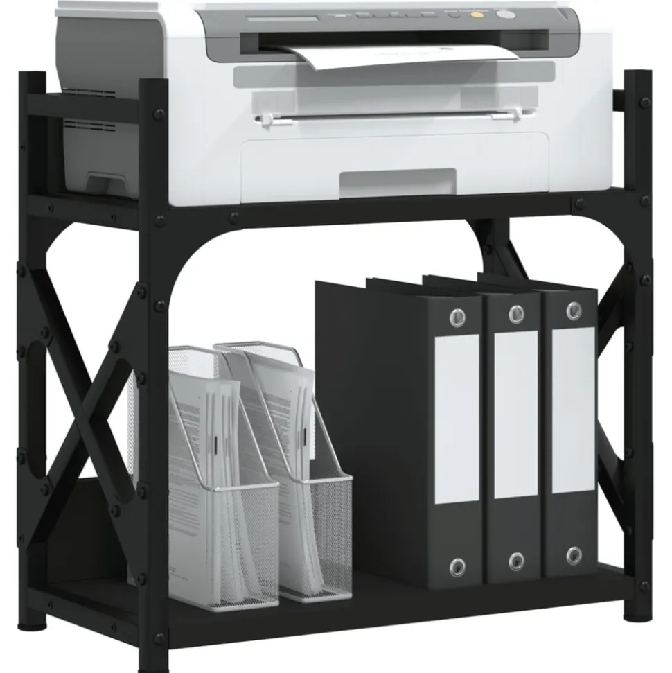 Le support d’imprimante à 2 niveaux permet de garder tout à portée de main et de rendre votre lieu de travail organisé et bien rangé. Matériau robuste et durable : le bois d’ingénierie est d’une qualité exceptionnelle avec une surface lisse et présente également résistance, stabilité et résistance à l’humidité. Le cadre métallique de l’organisateur de bureau assure robustesse et stabilité.Support d’imprimante à 2 niveaux : l’étagère supérieure est conçue pour les imprimantes, et les télécopieurs tandis que l’étagère inférieure est destinée aux dossiers et aux papiers à imprimer. Gardez tout facilement accessible et votre lieu de travail organisé et bien rangé.Pieds réglables : quatre pieds réglables avec des bouchons en plastique maintiennent la table pour imprimante en équilibre sur un sol inégal et augmentent sa stabilité.Organisateur de bureau multifonctionnel : l’organisateur de dossiers peut être utilisé non seulement comme support d’imprimante, mais aussi comme bibliothèque, table de chevet, table basse, table d’appoint, etc. Il peut aussi être largement utilisé dans la cuisine pour ranger les pots de condiments, les ustensiles de cuisine, les assiettes et les plats.