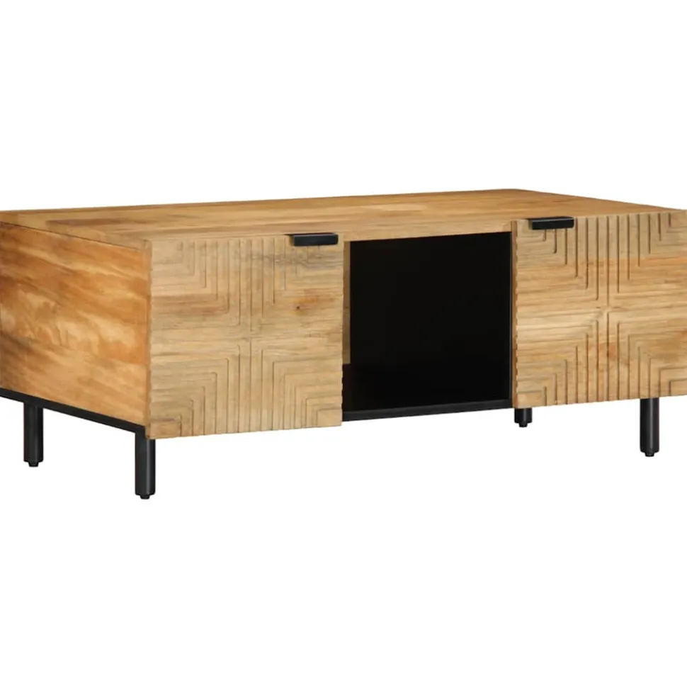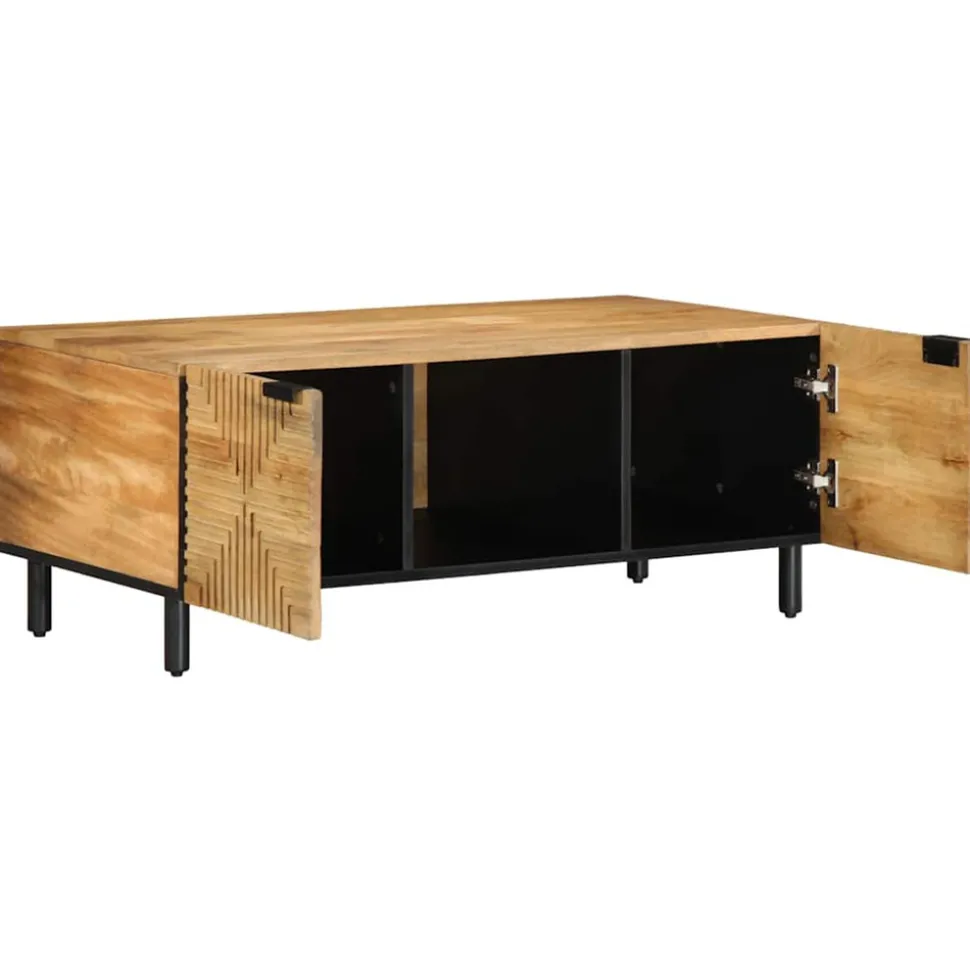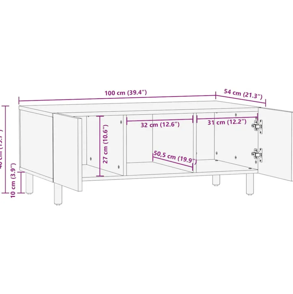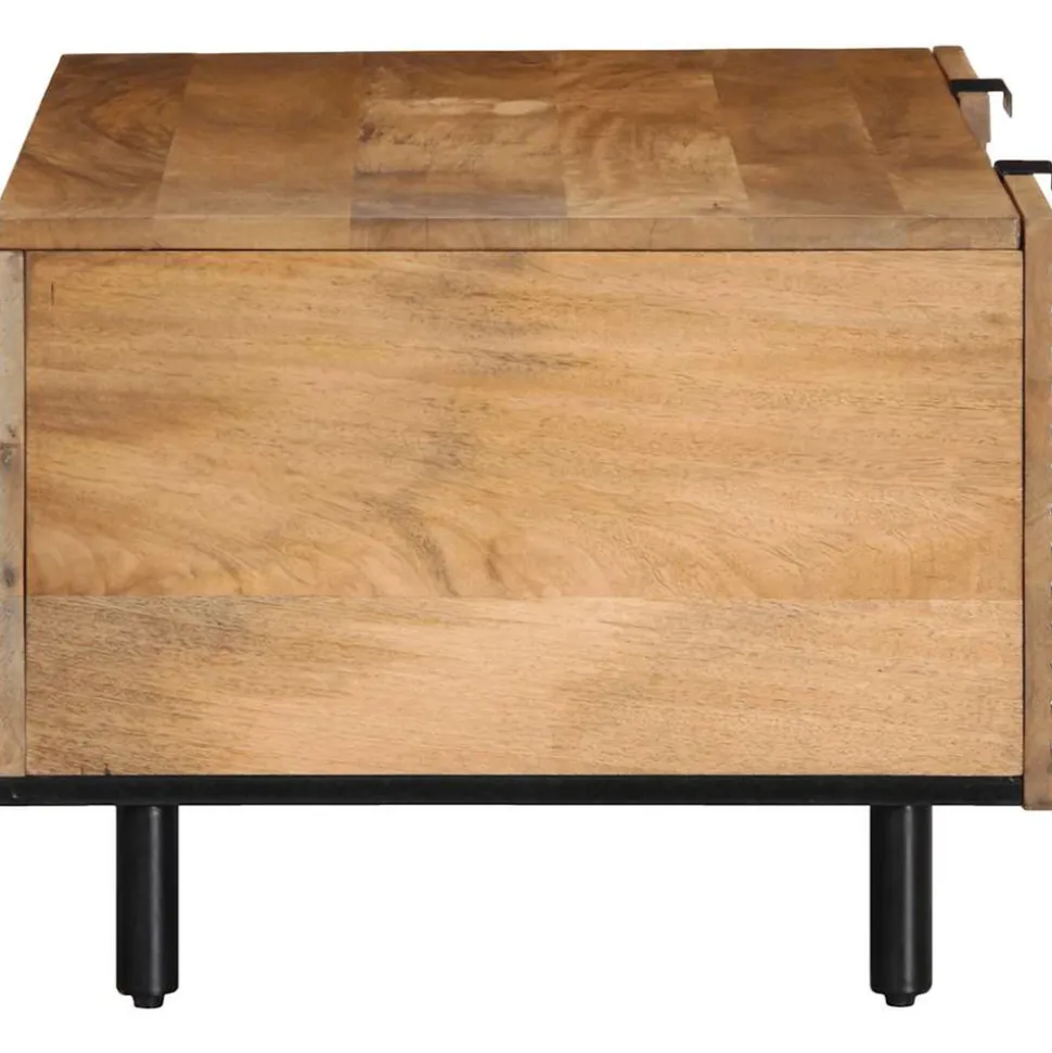 Détendez-vous et profitez du bon temps avec la famille et les amis autour de cette table basse ! Matériau robuste et stable : le bois de manguier massif, un bois dur tropical robuste, est très apprécié pour la fabrication de meubles en raison de sa durabilité et de sa solidité exceptionnelles. Ses beaux grains de bois rendent chaque meuble unique et légèrement différent de l’autre.Grand espace de rangement : cette table d’appoint offre un grand espace de rangement pour garder vos magazines, livres, DVD, télécommandes et autres petits objets bien organisés et à portée de main.Avec pieds : les pieds surélevés facilitent le nettoyage sous la table du canapé, préservant ainsi une apparence soignée et assurant une meilleure circulation de l’air autour des équipements électroniques.Multifonctionnelle : cette table d’appoint a de multiples fonctions. Elle peut servir de table d’appoint, de table d’extrémité ou de table de chevet dans votre salon ou votre chambre à coucher, répondant ainsi à vos besoins spécifiques. Bon à savoir :Chaque article est unique, avec des variations de couleurs et de grains. La livraison est aléatoire, ce qui garantit l’exclusivité et l’individualité de votre produit.