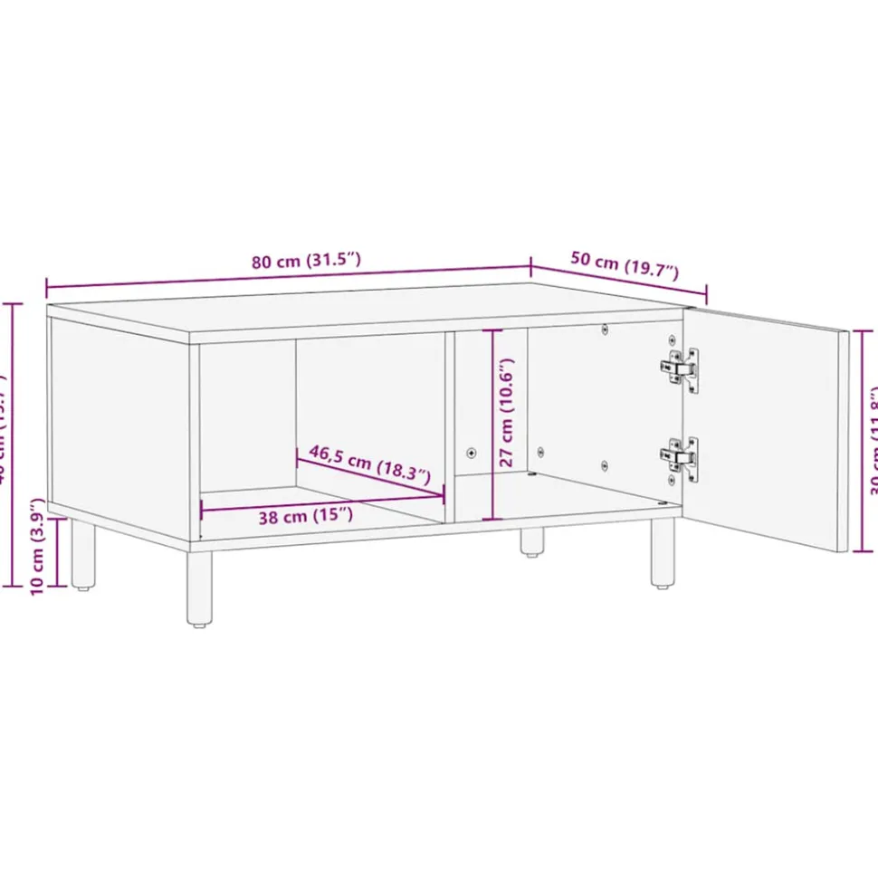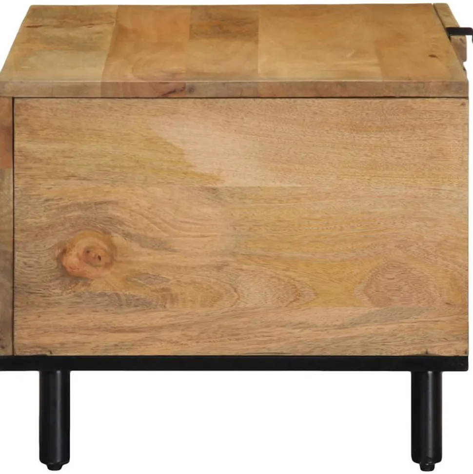 Détendez-vous et profitez du bon temps avec la famille et les amis autour de cette table basse ! Matériau robuste et stable : le bois de manguier massif, un bois dur tropical robuste, est très apprécié pour la fabrication de meubles en raison de sa durabilité et de sa solidité exceptionnelles. Ses beaux grains de bois rendent chaque meuble unique et légèrement différent de l’autre.Grand espace de rangement : cette table d’appoint offre un grand espace de rangement pour garder vos magazines, livres, DVD, télécommandes et autres petits objets bien organisés et à portée de main.Avec pieds : les pieds surélevés facilitent le nettoyage sous la table du canapé, préservant ainsi une apparence soignée et assurant une meilleure circulation de l’air autour des équipements électroniques.Multifonctionnelle : cette table d’appoint a de multiples fonctions. Elle peut servir de table d’appoint, de table d’extrémité ou de table de chevet dans votre salon ou votre chambre à coucher, répondant ainsi à vos besoins spécifiques. Bon à savoir :Chaque article est unique, avec des variations de couleurs et de grains. La livraison est aléatoire, ce qui garantit l’exclusivité et l’individualité de votre produit.