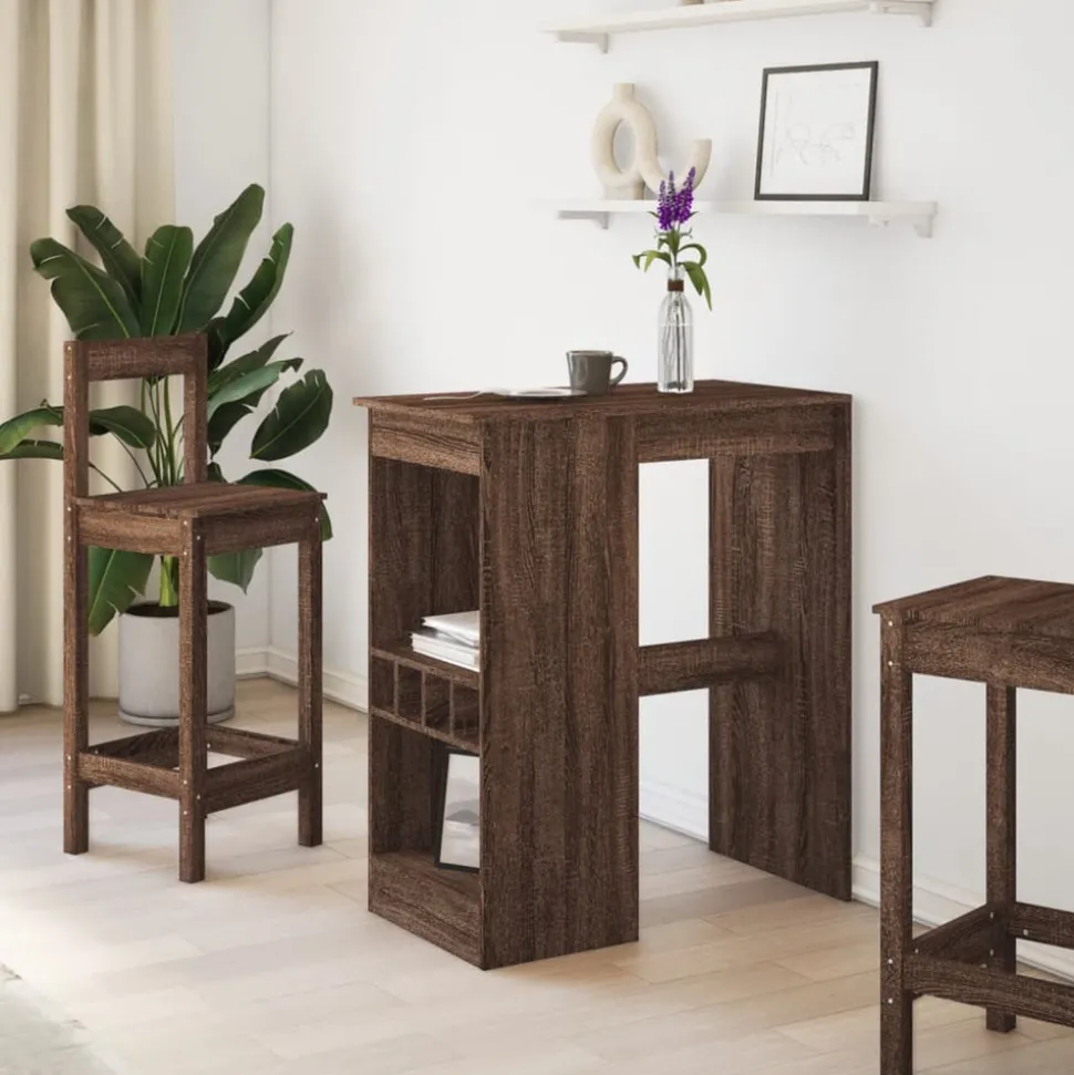 Choisir cette table de bar ajoute à la fois esthétique et praticité à votre espace. Matériau stable et durable : le bois d’ingénierie est un matériau durable et stable dont la surface lisse résiste à l’humidité, à la déformation et au fendillement, ce qui en fait un choix fiable pour une grande variété de projets.Porte-bouteilles intégrés : le bar comprend quatre porte-bouteilles de vin intégrés qui permettent de ranger des bouteilles, vous assurant ainsi d’avoir toujours vos boissons préférées à portée de main.Placement polyvalent : que ce soit dans la cuisine, le salon ou la salle à manger, cette table haute embellit n’importe quel espace. Son design chaleureux incite à s’y attarder, ce qui en fait une pièce maîtresse parfaite pour les réunions intimes et les conversations informelles.Entretien facile : grâce à sa surface lisse, la table de pub est facile à nettoyer avec un chiffon humide et nécessite peu d’entretien. Attention :Pour éviter qu’il ne bascule, ce produit doit être utilisé avec le dispositif de fixation murale fourni. Bon à savoir :Les vis et les chevilles pour l’intérieur du mur ne sont pas incluses. Nous vous conseillons de trouver et d’utiliser des vis et des chevilles adaptées spécifiquement à vos murs. Si vous n’êtes pas sûr, vous pouvez consulter un professionnel. Veuillez lire et suivre chaque étape des instructions.