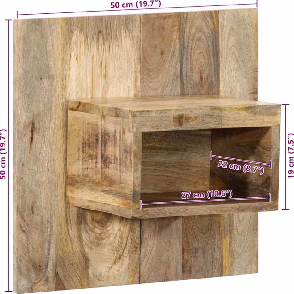 Améliorez votre chambre à coucher avec ces tables de chevet murales ! Elles s’intègrent facilement à tous les styles de meubles de votre maison ! Matériau robuste et stable : le bois de manguier massif, un bois dur tropical robuste, est très apprécié pour la fabrication de meubles en raison de sa durabilité et de sa solidité exceptionnelles. Ses beaux grains de bois rendent chaque meuble unique et légèrement différent de l’autre.Grand espace de rangement : la table de chevet offre un grand espace de rangement pour les magazines, les livres, les verres et autres objets essentiels du coucher, les gardant organisés et à portée de main.Design de montage mural : la table de chevet flottante peut être fixée au mur pour ajouter de l’espace de rangement supplémentaire. De cette façon, vous pouvez maximiser votre espace au sol et garder la zone propre. Bon à savoir :Chaque article est unique, avec des variations de couleurs et de grains. La livraison est aléatoire, ce qui garantit l’exclusivité et l’individualité de votre produit.
