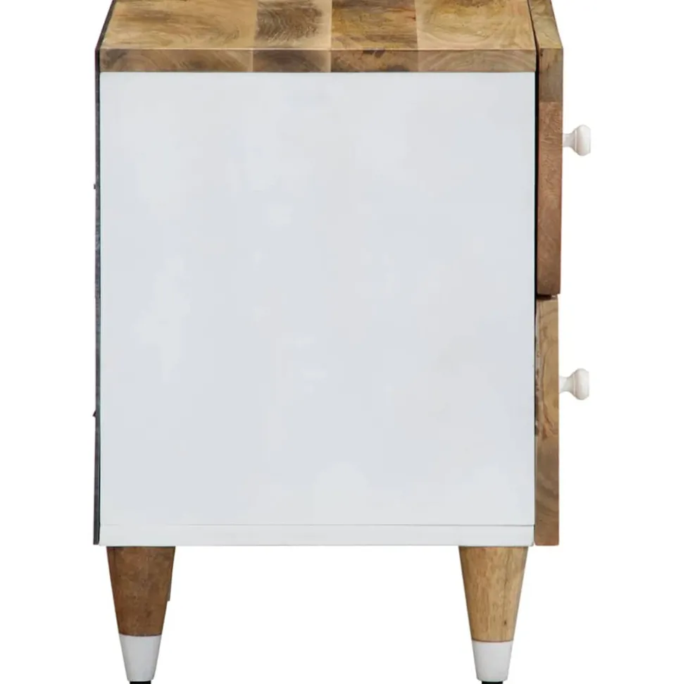 - Matériau : bois de manguier naturel avec écran de peinture blanche, bois d’ingénierie, métal