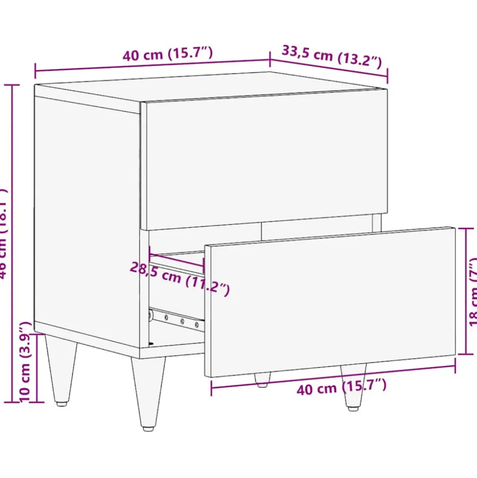 Ces tables de chevet au design élégant sont un supplément intemporel à votre décoration intérieure. Matériau robuste et stable : le bois de manguier massif, un bois dur tropical robuste, est très apprécié pour la fabrication de meubles en raison de sa durabilité et de sa solidité exceptionnelles. Ses beaux grains de bois rendent chaque meuble unique et légèrement différent de l’autre.Grand espace de rangement : la table de chevet offre un grand espace de rangement pour les magazines, les livres, les verres et autres objets essentiels du coucher, les gardant organisés et à portée de main.Utilisation polyvalente : cette table de chevet n’est pas seulement destinée à la chambre à coucher, elle peut également être utilisée comme table d’appoint dans le salon ou comme espace de rangement supplémentaire dans n’importe quelle pièce, s’adaptant parfaitement à vos besoins.Pieds en bois : le meuble-lit est soutenu par de solides pieds en bois, ce qui garantit sa stabilité, sa sécurité et sa fermeté. Bon à savoir :Chaque article est unique, avec des variations de couleurs et de grains. La livraison est aléatoire, ce qui garantit l’exclusivité et l’individualité de votre produit.