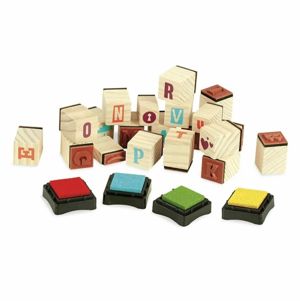 Un coffret de tampons ABC pour jouer aux apprentis imprimeurs.