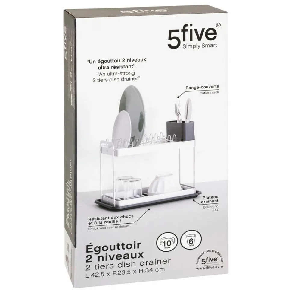 Égouttoir 2 niveaux gris 42,5×23,5cm