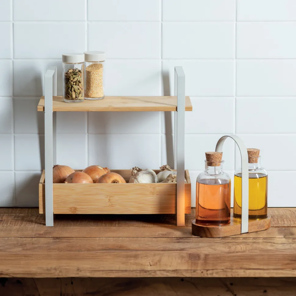 Étagère « Ordera » 2 niveaux avec bac de rangement en bambou