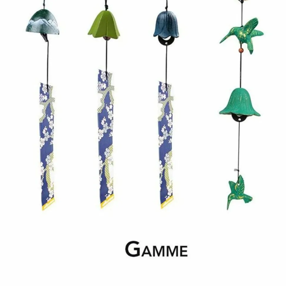 Jouet du vent japonais en fonte vert. Ce sera le printemps toute l’année avec ce jouet du vent en fonte d’un joli vert. Il fera un objet de décoration parfait à accrocher sur une terrasse ou aux branches de votre plus bel arbre. La belle mélodie vous accompagnera pour un moment de détente. Qu’est-ce qu’un jouet du vent ? Le jouet du vent ou carillon japonais est un objet de décoration traditionnel au Japon.Il est souvent composé d’une cloche à laquelle un petit poème en papier appelé « haïku » est accroché. Objet incontournable en été au Japon, il produit un effet sonore au gré du vent.Le son unique des clochettes donne un sentiment de légèreté et de fraîcheur dans la maison ou au jardin.