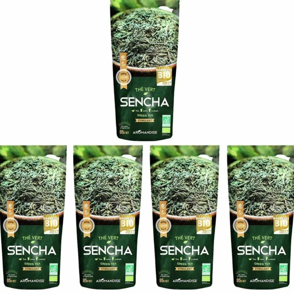 feuilles de thé vert Sencha issues de l’agriculture biologique.