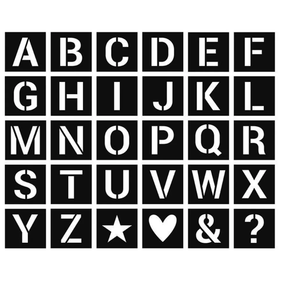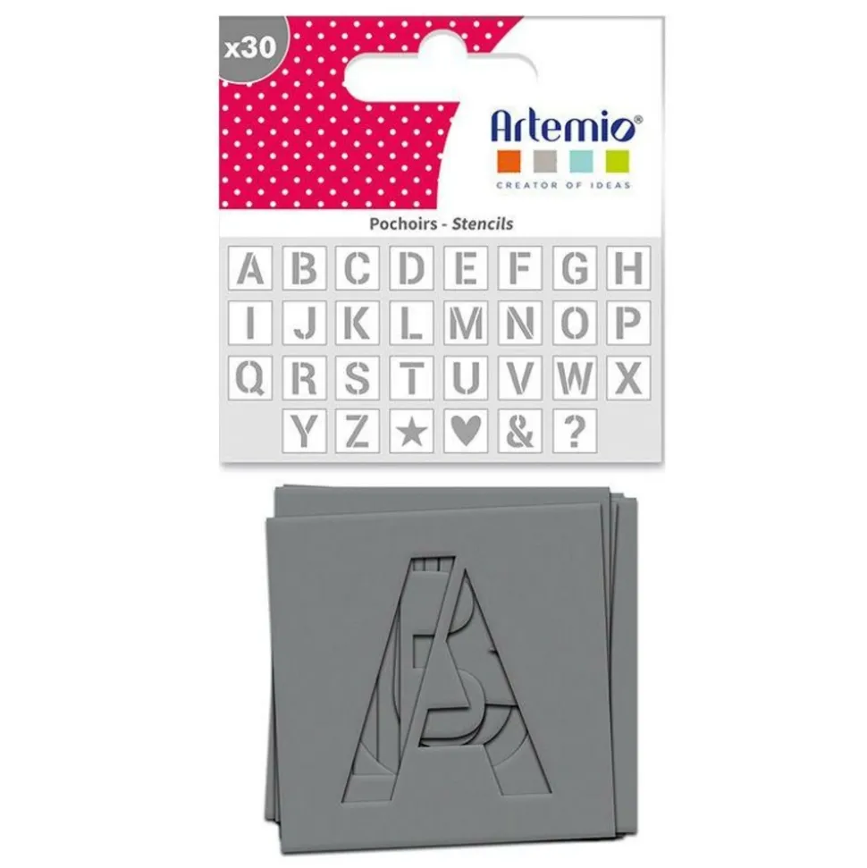 Cet ensemble de 30 pochoirs vous permettra de personnaliser vos créations avec les lettres de l’alphabet, une étoile, un coeur, un & et même un point d’interrogation. Chaque pochoir mesure 6 x 6 cm. Le pochoir permet de reproduire un motif sur tout support, décoration ou scrapbooking, au moyen de bombe de peinture, craie ou stylo, afin de créer de jolis motifs détaillés sur vos projets de décoration! Mode d’emploi : Positionner le pochoir à l’endroit souhaité sur le support. Appliquer la peinture ou l’encre à l’aide d’un pinceau. Ôter le pochoir et laisser sécher. Après chaque utilisation, il est nécessaire de nettoyer vos pochoirs sous l’eau avec un peu de savon. Les pochoirs sont en plastique.