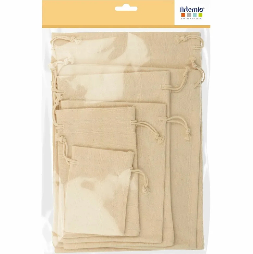 Ces 5 petits sacs en toile dans des formats différents sont à utiliser tels quels ou à personnaliser comme vous le souhaitez ! Ces pochettes sont parfaites pour créer un calendrier de l’Avent original : utilisez-les avec l’échelle en bois 4 étages d’Artemio en les suspendant avec de la ficelle. Vous pouvez aussi les utiliser comme pochettes surprises pour offrir vos cadeaux de Noël. Dimensions : 12 x 9 cm / 18 x 11 cm / 24,5 x 15,5 cm / 25,5 x 21 cm / 31,5 x 21,5 cm. Collection ‘Hiver Blanc’ d’Artemio. Contenu : 5 pochettes.