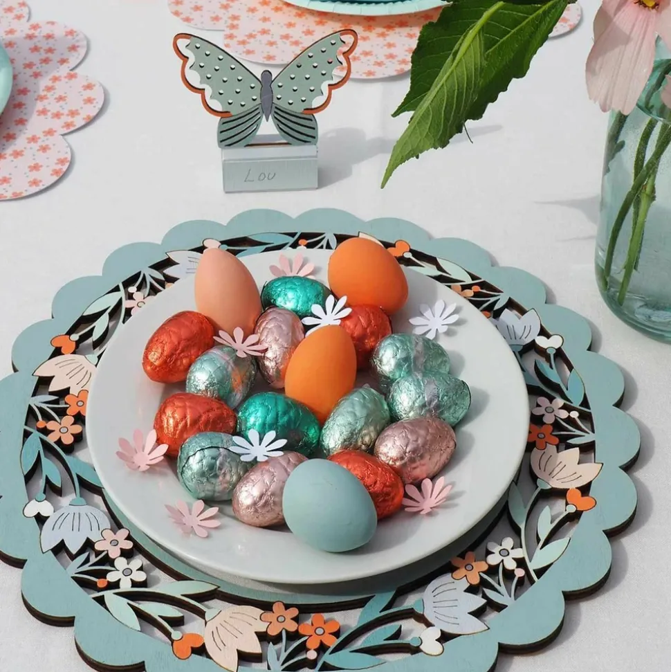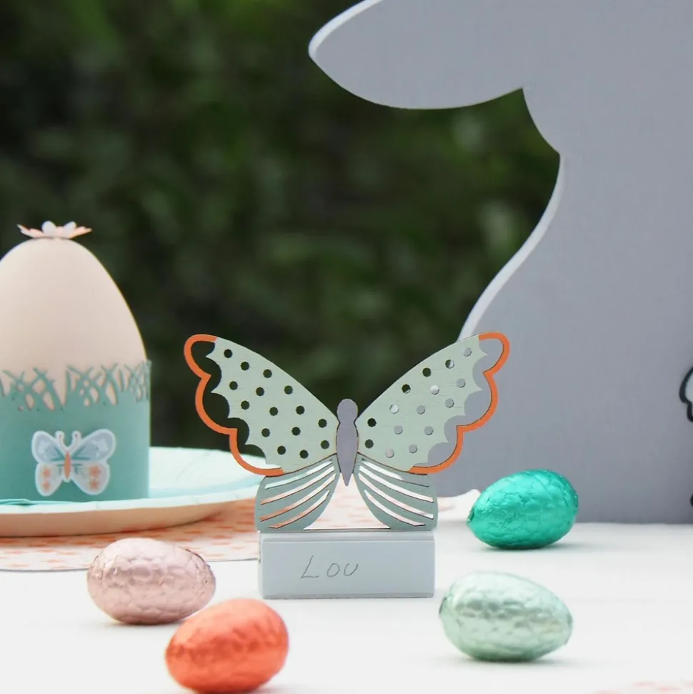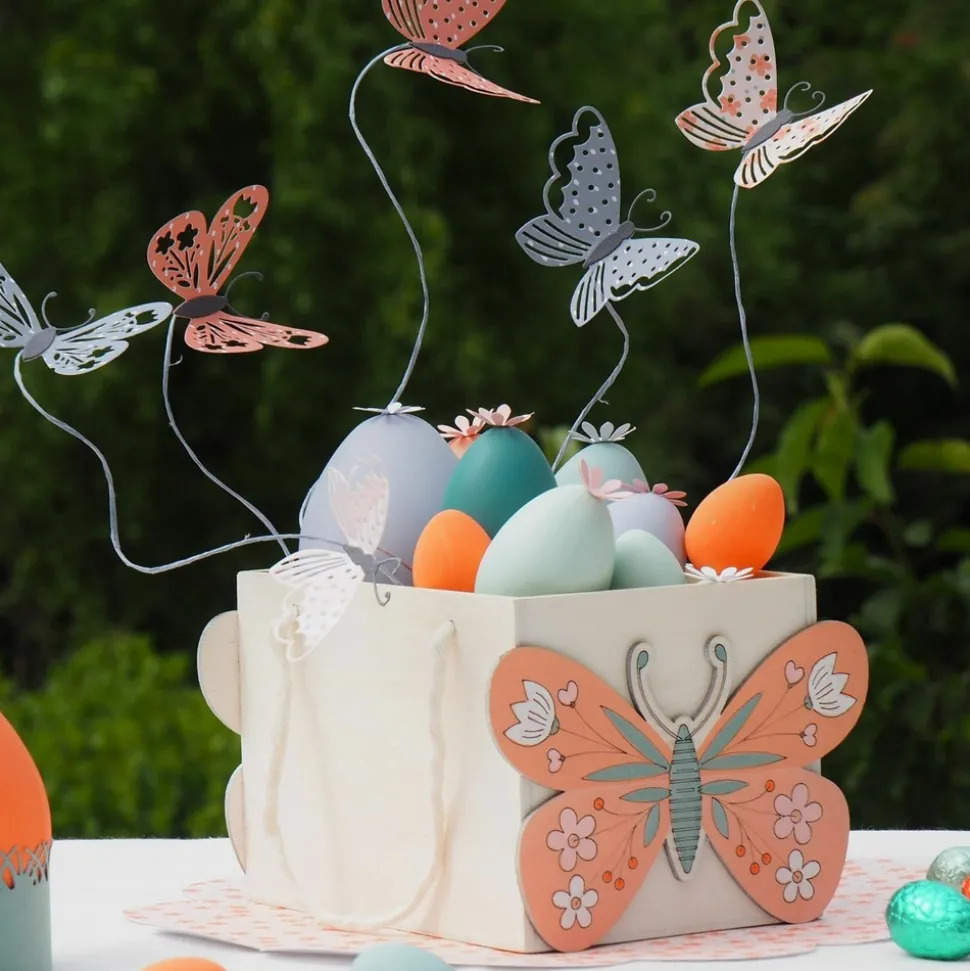 Créez votre propre décoration de Pâques personnalisée avec ce lot de : marques places papillons composé de 3 papillons différents présents en 2 exemplaires. Idéals pour décorer votre table à Pâques ou pour un bon repas d’été, ils sont de couleur bois naturel mais vous pouvez très bien les customiser et les décorer à votre guise .( Dimensions papillon n°1 : 7 x 7.5 x 2 cm. Dimensions papillon n°2: 7 x 9 x 2 cm. Dimensions papillon n°3: 7.5 x 9.5 x 2 cm.) Vous trouverez également un adorable panier en bois décoré de jolis papillons. Ses anses sont en cordelette blanche pour faciliter la prise en main. Vous pouvez le laisser tel quel ou bien le décorer à l’aide de peinture. ( Dimensions du produit : 11 x 17,3 x 15 cm. ) Et pour finir une superbe couronne de fleurs en bois à accrocher au mur ou à poser sur une table. ( Dimensions du produit : 29 x 29 x 0.5 cm. )