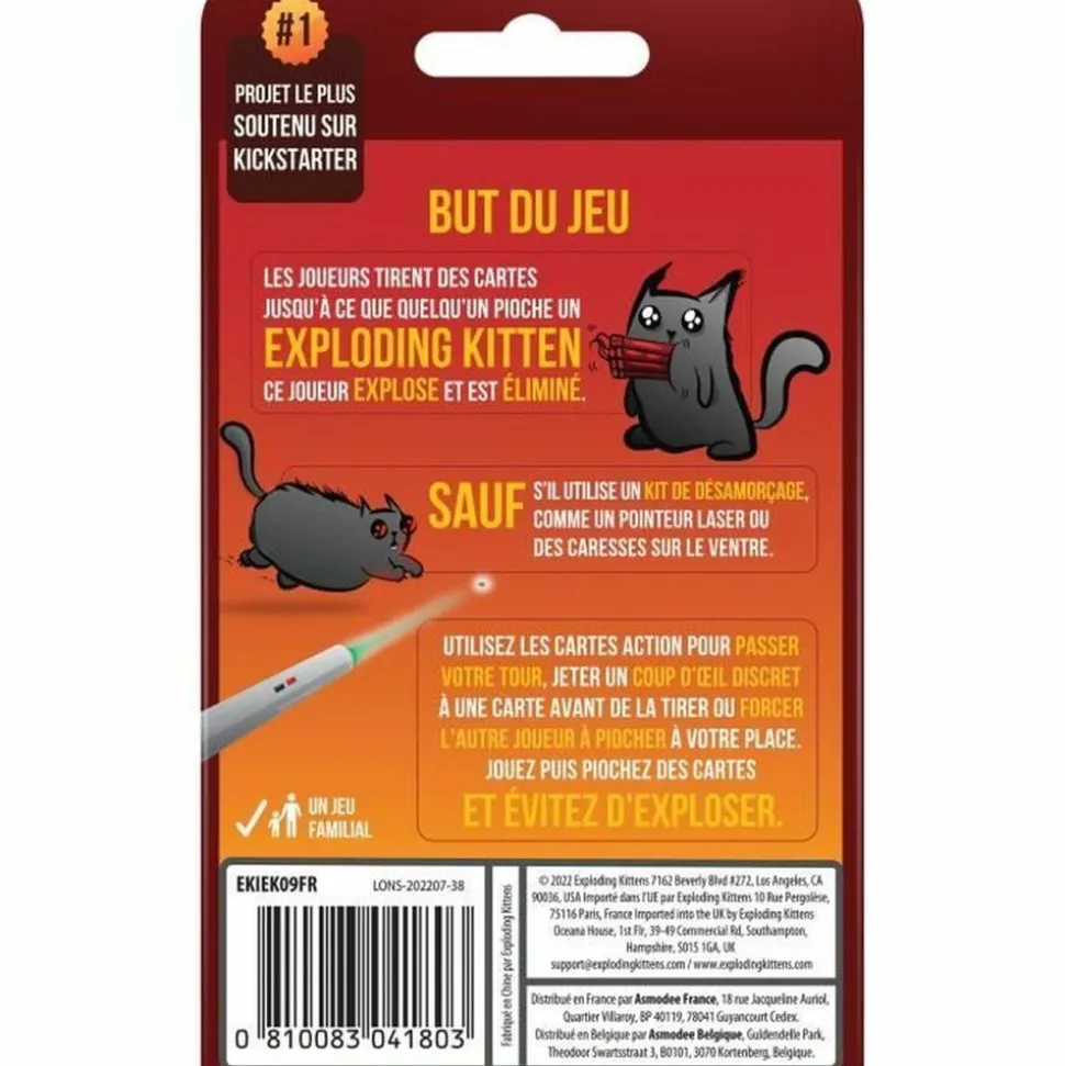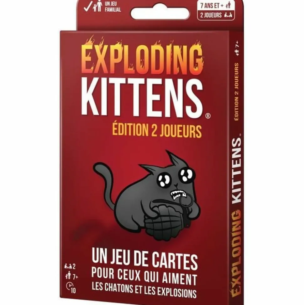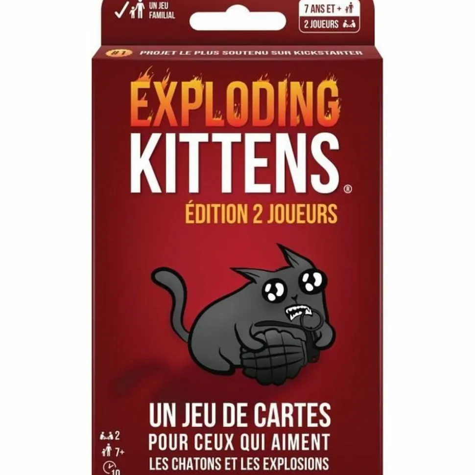 Dans ce jeu culte, vous jouez a tour de rôle en tirant des cartes jusqu’à ce que l’un de vous pioche le Chaton Explosif. Lorsque cela se produit, il meurt et est éliminé, son adversaire remporte la partie. Toutes les autres cartes ont des effets redoutables pour éviter d’exploser et éliminer votre adversaire !