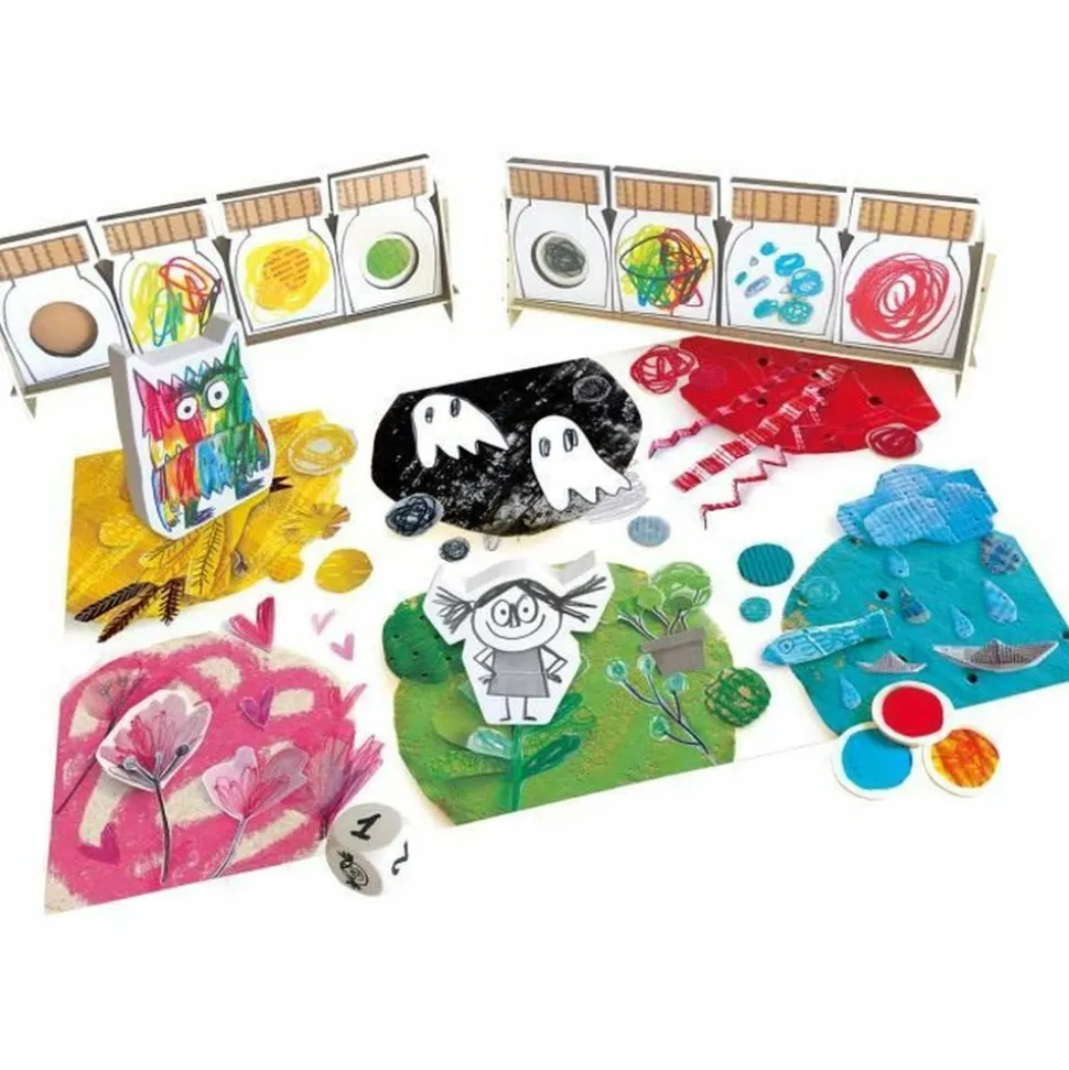 Le monstre des couleurs ne sait pas ce qu’il lui arrive : toutes ses émotions sont chamboulées ! Il faut l’aider a les réunir et a les relier aux événements qui les déclenchent. Pour cela, les enfants doivent eux aussi dire ce qui les attriste, les rend joyeux, les calme, les énerve ou leur fait peur. La boîte de jeu contient 1 plateau de jeu, 1 jeton monstre des couleurs, 1 jeton petite fille, 1 dé, 8 jarres pour y stocker les émotions, 2 étagères pour y ranger les jarres, 5 marqueurs d’émotion et la règle du jeu. A partir de 4 ans.