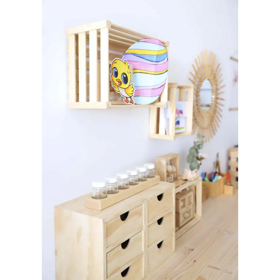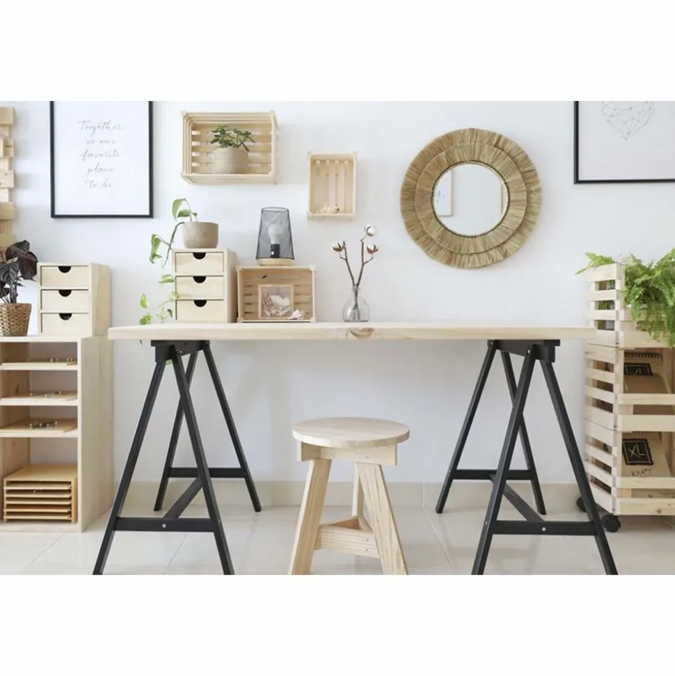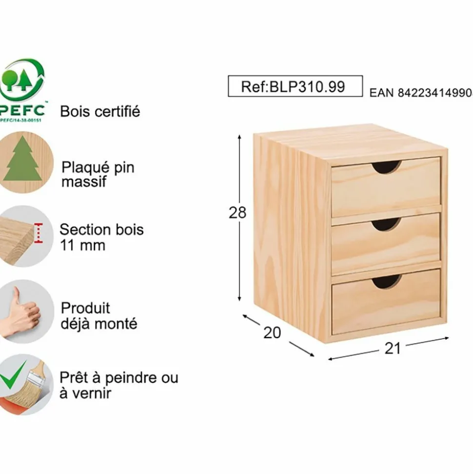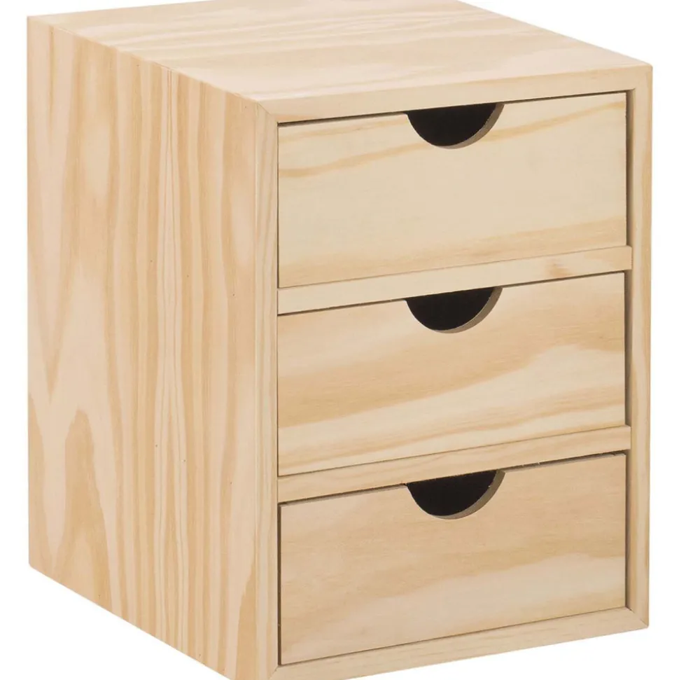 Mini rangement bloc en pin brut ave tiroirs