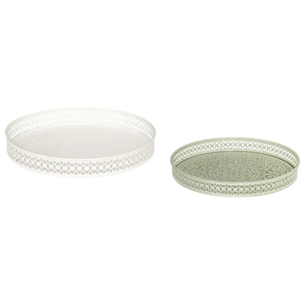 Les 2 plateaux « Wild » Atmosphera séduiront les inconditionnels d’accessoires déco poétiques et délicats ! Ces deux plateaux ronds en acier sont teintés dans deux coloris très doux et sont de diamètres complémentaires. Leurs fonds et les bords sont ornés de motifs raffinés, rappelant les objets d’autrefois. Très pratiques pour servir thés et cafés, vous pourrez également y placer des bougeoirs ou un soliflore en verre et les associer à du mobilier en bois. Effet chaleureux assuré !