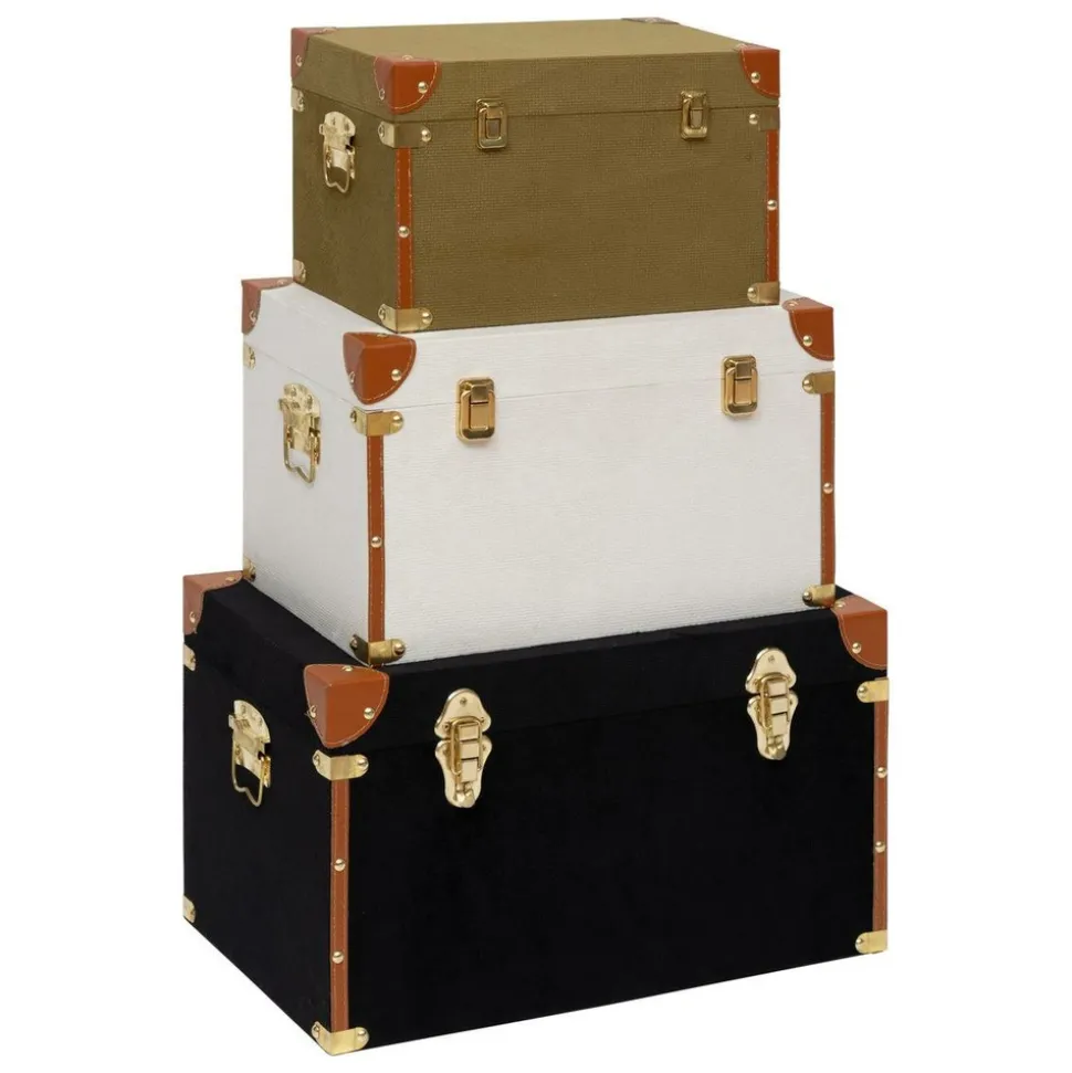 Délicieusement rétro, les 3 malles « Twis » Atmosphera séduiront les amateurs d’accessoires déco au look vintage ! À la fois rangements d’appoint et objets déco, ces malles en bois sont tendues de lin et se déclinent dans des tailles et des coloris complémentaires. Empilables, elles se distinguent par leurs détails en métal doré et leurs coins renforcés effet cuir. Chacune est équipée de poignées aux extrémités afin d’être facilement déplacée. Placez-les sur un tapis Atmosphera pour créer un coin chaleureux !