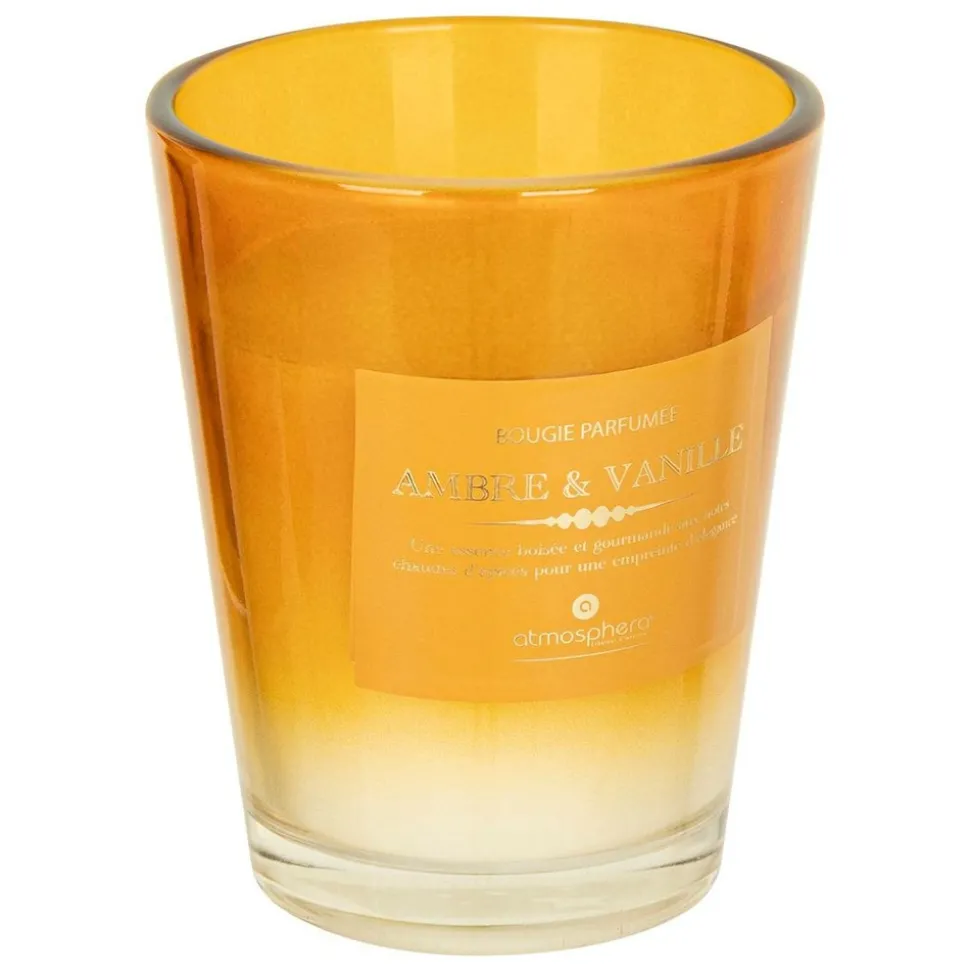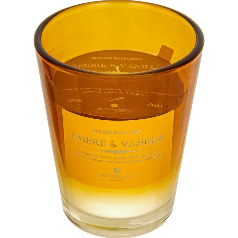 La bougie* parfumée « Alma » Atmosphera diffusera une fragrance ambrée et vanillée dans votre intérieur. Elle propose une essence boisée et gourmande aux notes chaudes d’épices pour une empreinte d’élégance.