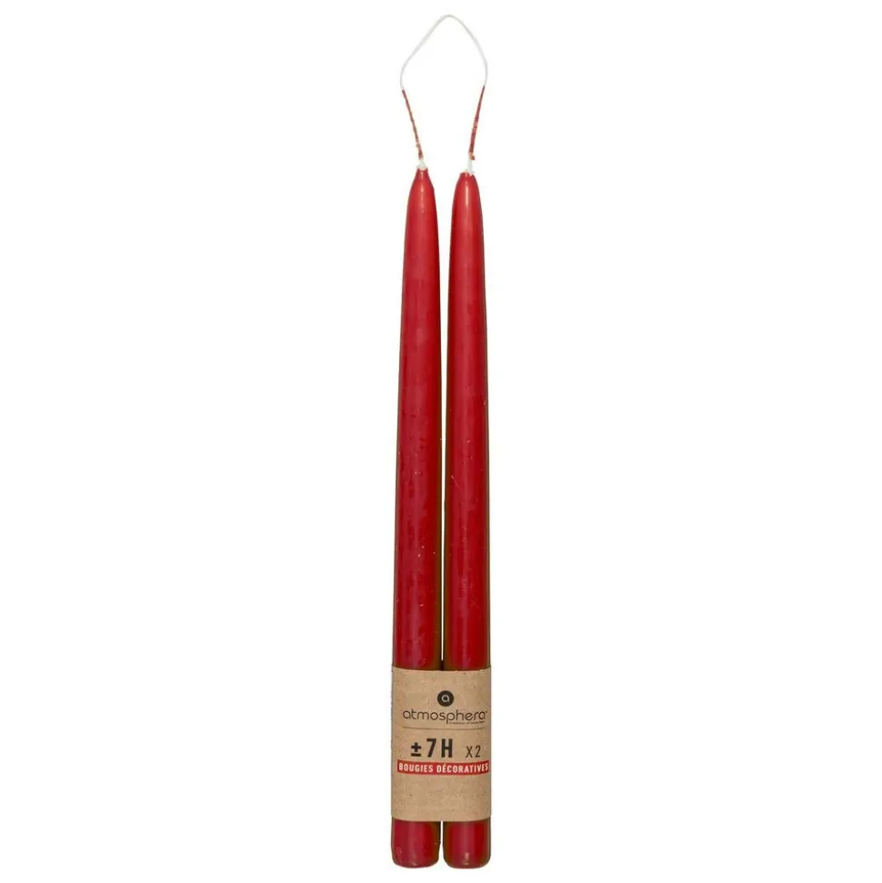 Installez votre lot de 2 bougies bâtons « Hugo » dans des bougeoirs Atmosphera et profitez d’une décoration de caractère.