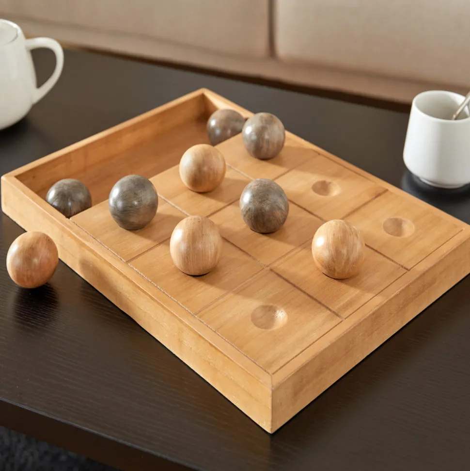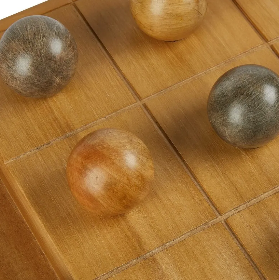 Le jeu de morpion « Jehan » Atmosphera animera vos soirées entre amis tout en accessoirisant un meuble avec une note chaleureuse. Réalisé en bois de pin et de paulownia, ce morpion se joue grâce 9 boules de teintes différentes qui se rangent sur le côté du socle. Grand format, ce jeu intemporel ne passera pas inaperçu dans votre déco ! Placez-le sur une table basse ou sur une console en bois et métal Atmosphera pour créer un mix de matières.