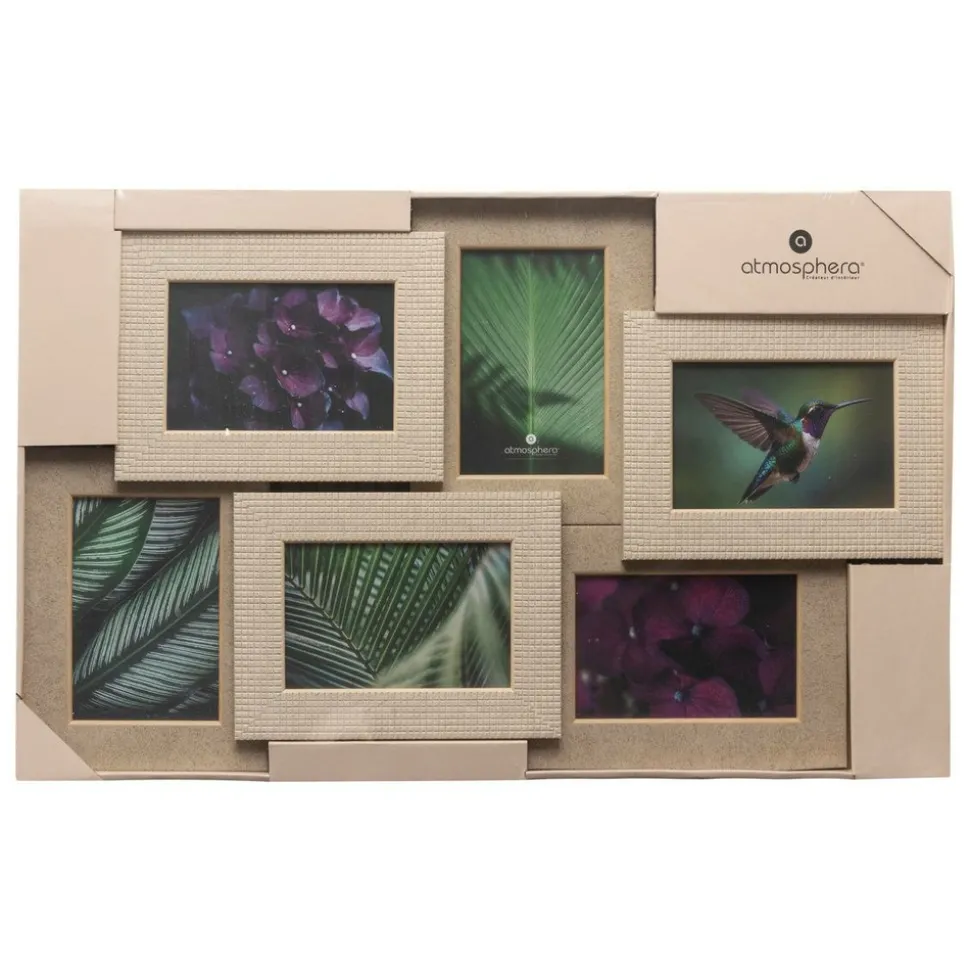 Grâce à ses dimensions, le pêle-mêle « Hedile » Atmosphera vous permettra de personnaliser un pan de mur avec vos photos préférées. Composé de 6 cadres vitrés et superposés les uns sur les autres, ce pêle-mêle est conçu pour exposer des photos au format 10 × 15 cm dans les deux sens d’orientation. Texturés, les bords des cadres se marieront avec toutes les teintes de mobilier.