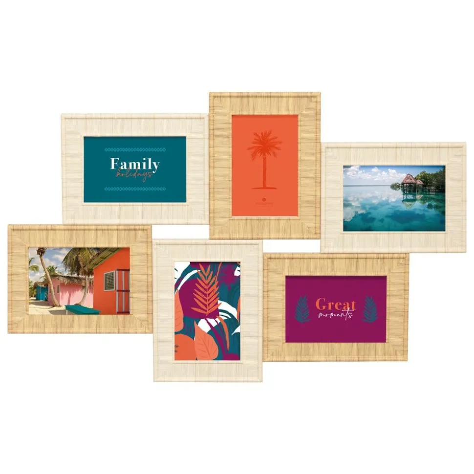 Vous souhaitez profiter de vos photos préférées dans votre intérieur ? Le pêle-mêle « Théa » Atmosphera vous permettra de mettre en valeur 6 photos au format 10 × 15 cm en paysage et en portrait. Ce pêle-mêle est composé de cadres rectangulaires en bois au style exotique, déclinés dans deux tons très naturels. Vous pourrez accrocher l’ensemble dans le sens de votre choix.