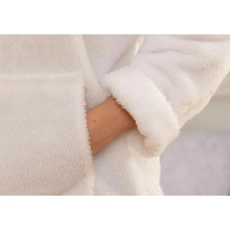 Ce plaid à manches en polyester est de taille unique.