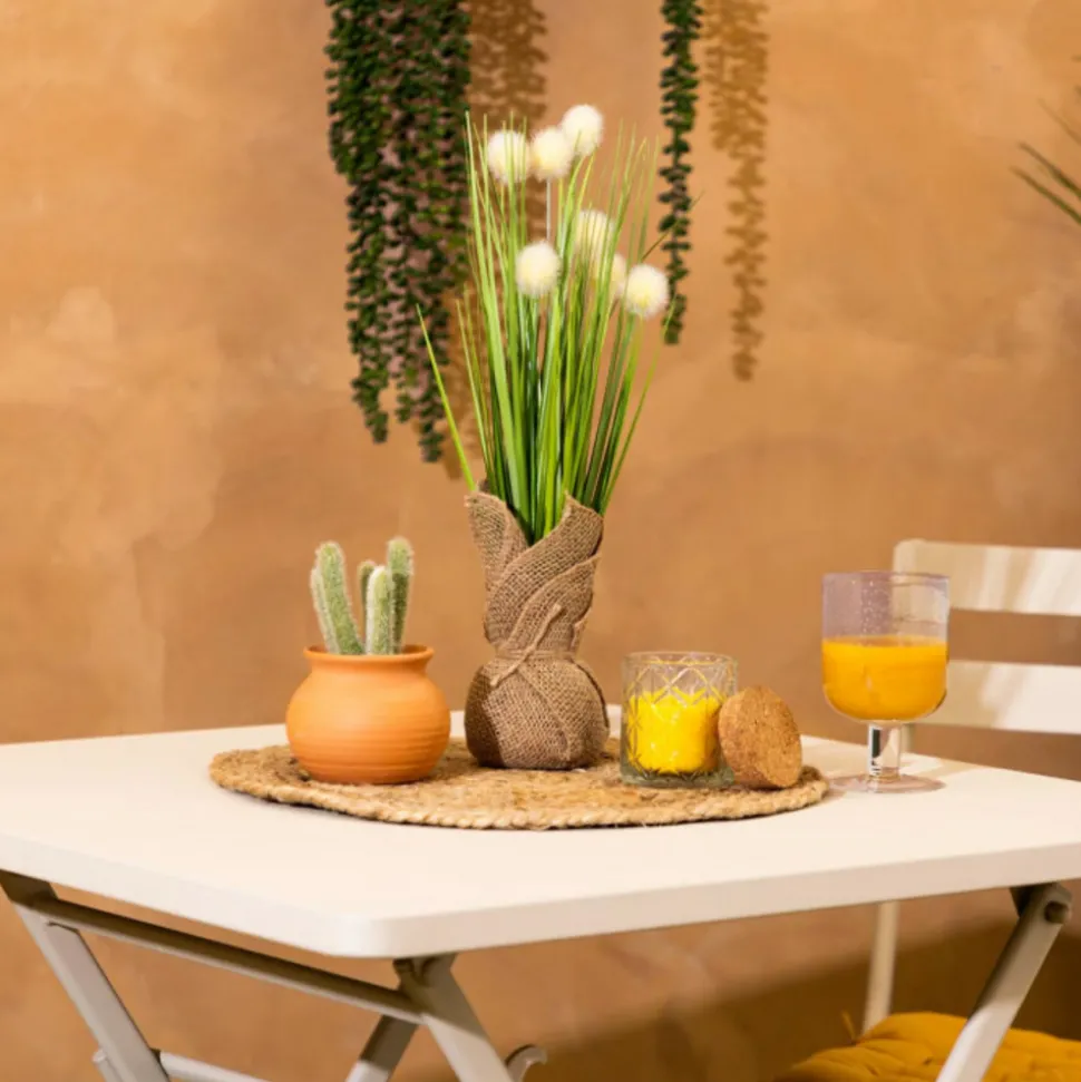 Délicate et chaleureuse, la plante artificielle en pot « Lari » Atmosphera imite des pissenlits à la perfection ! Constituée de tiges et de fleurs, cette plante est placée dans un pot entouré d’un pan de jute naturelle, maintenu par un lien. Idéale pour ajouter une touche végétale en intérieur sans avoir à se soucier de son entretien, vous pourrez poser cette plante artificielle de format moyen sur un buffet en bois comme au centre d’une table.