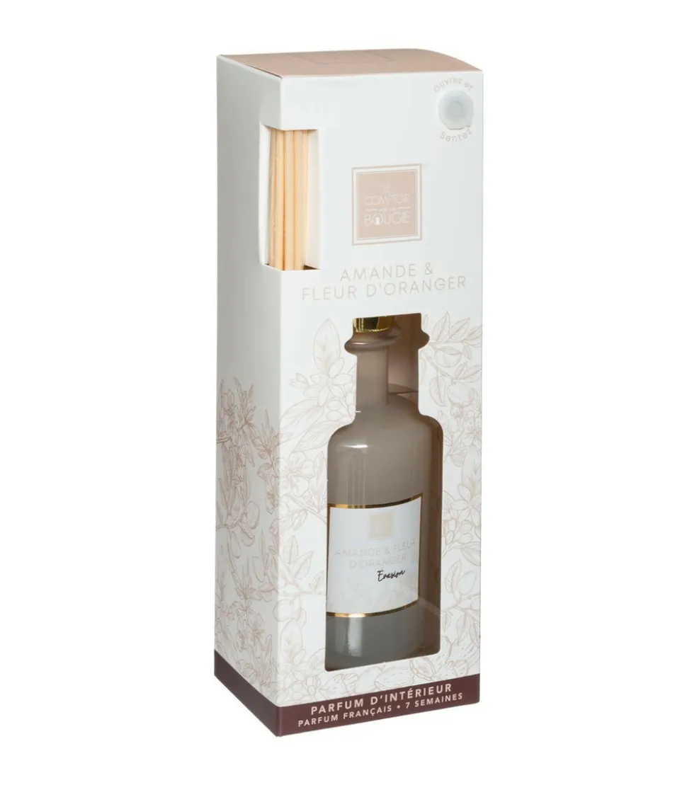Diffuseur de parfum Amande et Fleur d Oranger 200 ml avec 8 Bâtonnets en rotin –