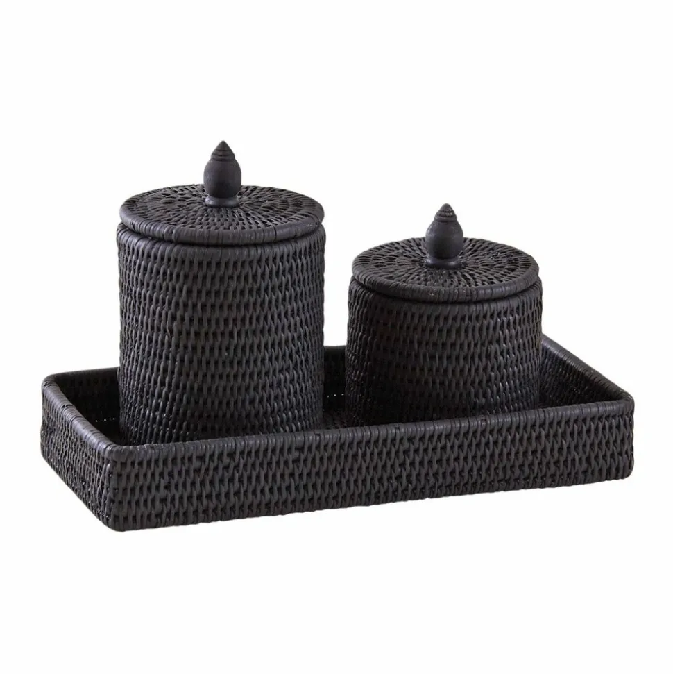 Ensemble boîtes + plateau en rotin