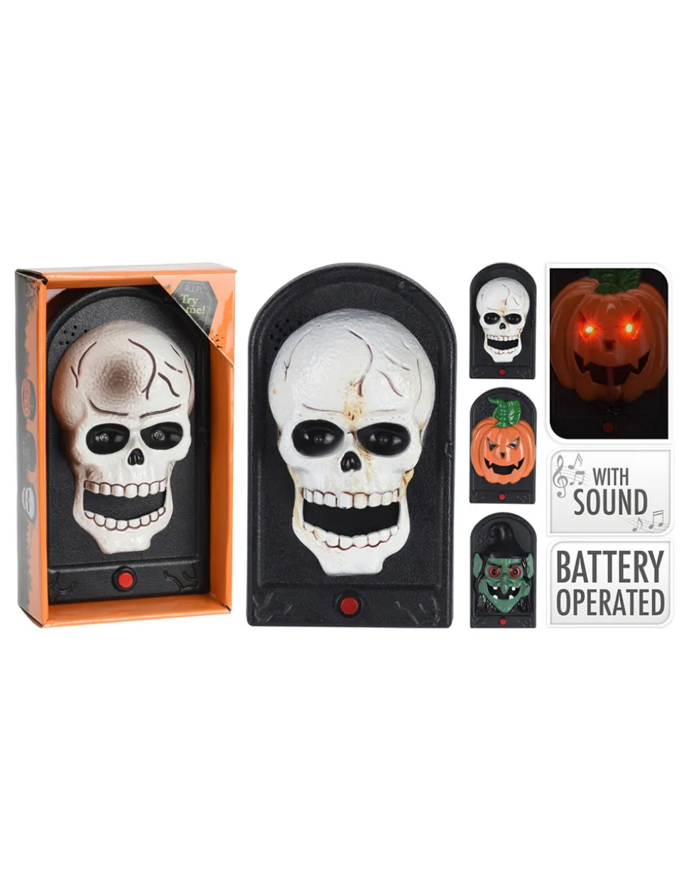 Cloche d’halloween, à batterie, avec son, 3 modèles. 21×12,5x6cm. basics