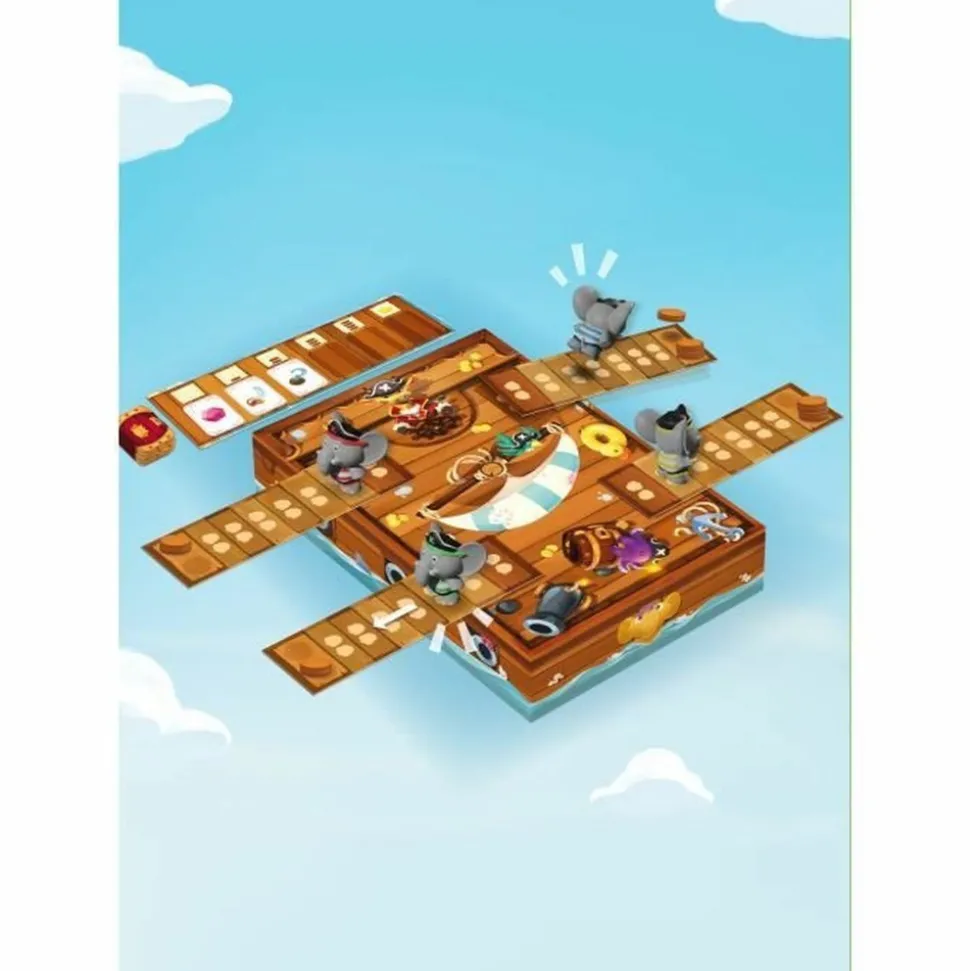 Fouillez le coffre du capitaine et placez des poids au bout la planche de vos adversaires pour les faire tomber ! Mais attention a ne pas prendre trop de risques. A chaque faux pas, vous avancez d’une case sur votre propre planche !