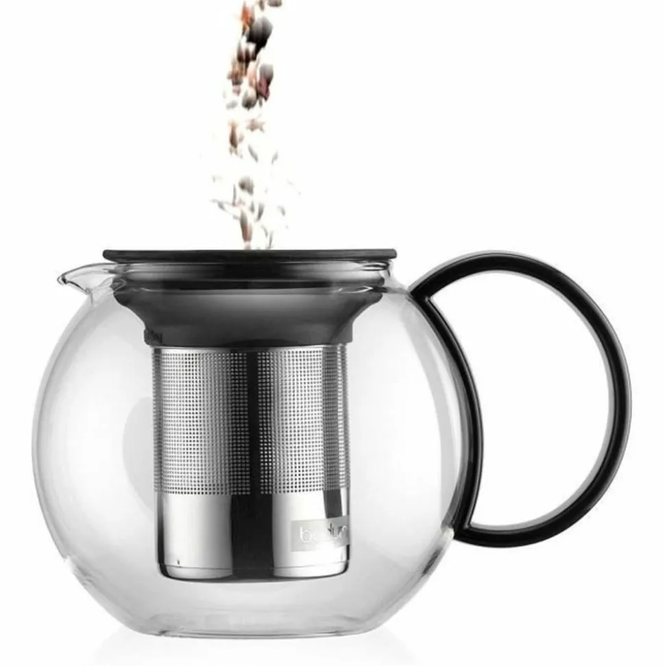 Découvrez la théiere a piston BODUM ASSAM. Avec son couvercle plastique, son filtre en inox et sa contenance de 1.0 l, cette théiere est parfaite pour préparer votre thé préféré. Son design noir élégant s’integrera parfaitement dans votre cuisine. Profitez d’une infusion parfaite grâce a son systeme a piston et son filtre intégré. Poids net : 750g.