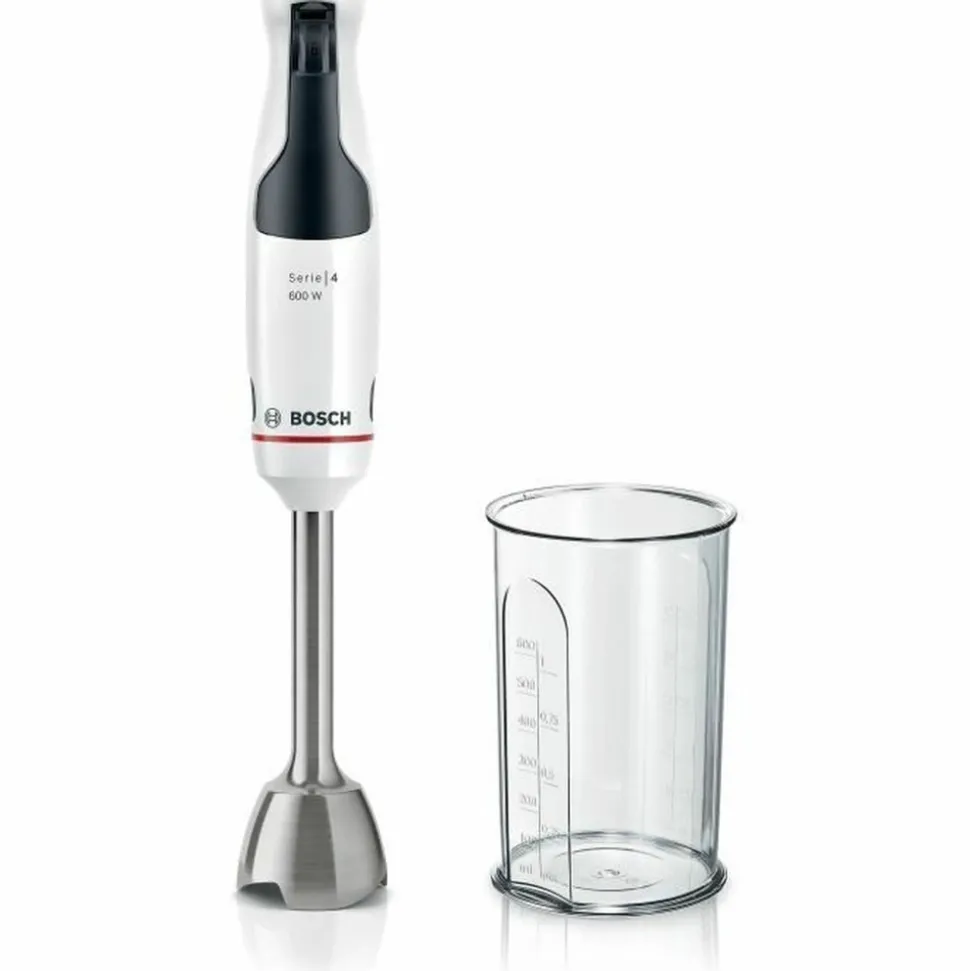 Le mixeur plongeant ErgoMaster de BOSCH est équipé d’un moteur puissant de 600 W et de 4 lames aiguisées QuattroBlade pour des résultats de mixage optimaux. Avec son levier de vitesses a gâchette et sa fonction turbo, il est facile a utiliser. Le revetement soft-touch, le bouton d’éjection automatique et le bol mélangeur en font un outil pratique et confortable a utiliser.