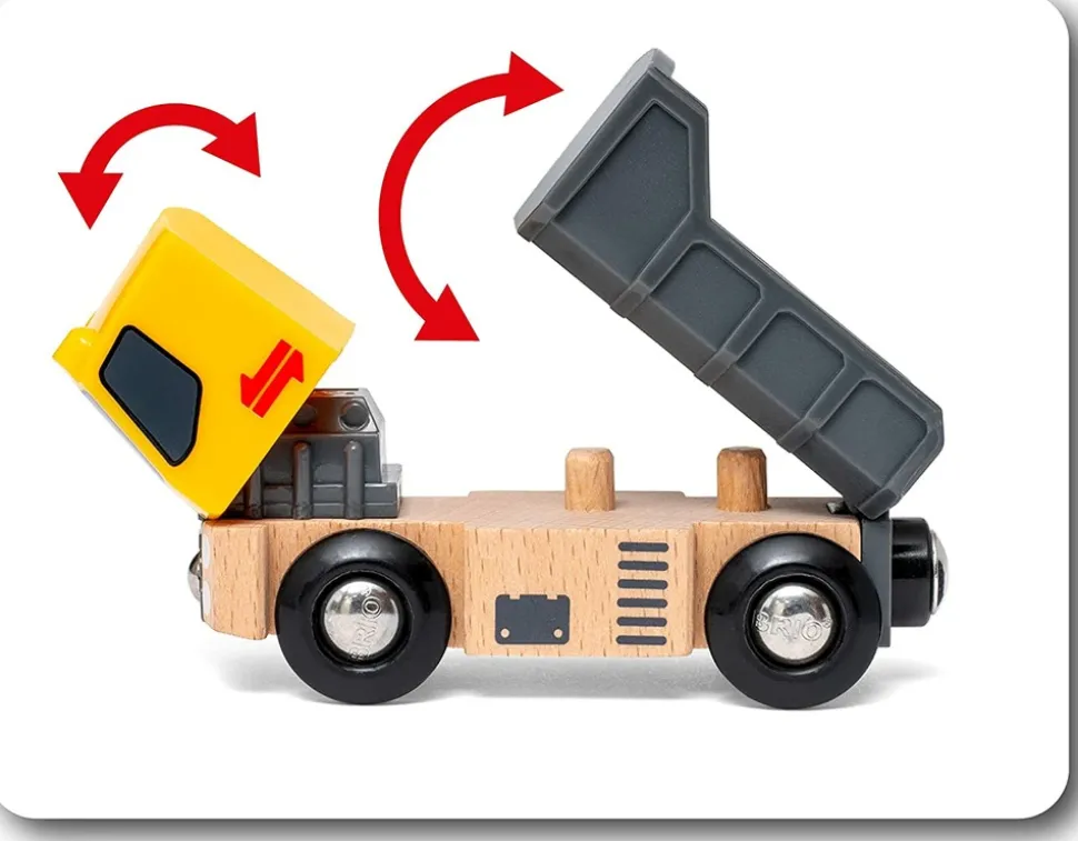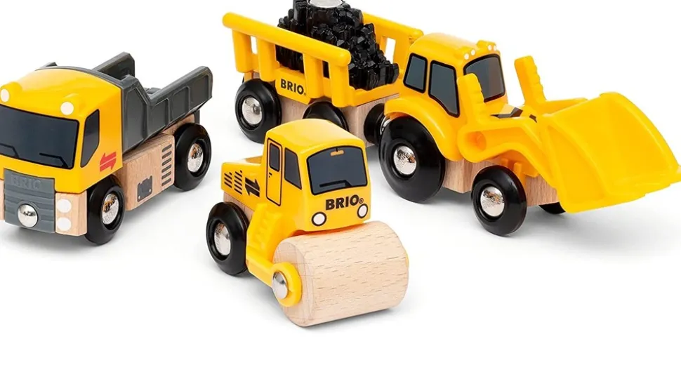 Set de 3 engins de chantier adaptable à tous les circuits de train en bois de la marque BRIO Brio World. Référence 33658.