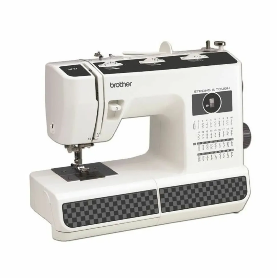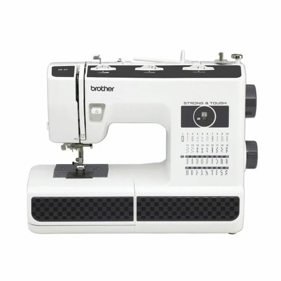 37 points de couture – Variateur de vitesse – Systeme d’enfile aiguille automatique – Abaissement des 6 griffes d’entrainement – Crochet et plaque a aiguille en métal – Inclus : DVD d’initiation – Garantie : 3 ans