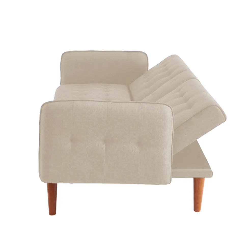 Avec son revêtement en lin et son design moderne, il s’intègre harmonieusement dans tous les intérieurs. Grâce à sa densité d’assise optimale, composée de 4 cm de mousse recyclée et de 1 cm de mousse fraîche, il vous garantit un confort exceptionnel pour vos moments de détente. Le dossier, quant à lui, est conçu avec le même souci de qualité, comprenant 4 cm de mousse recyclée et 1 cm de mousse fraîche, pour un maintien optimal. Son atout majeur : une tablette centrale astucieuse, parfaite pour garder vos boissons à portée de main sans les renverser tout en regardant la télévision. Convertible en lit en un clin d’œil, il vous sera d’une grande utilité pour accueillir des invités à dormir de dernière minute ou pour créer un espace de couchage supplémentaire. Le piètement en bois d’hévéa complète son allure raffinée, faisant de ce canapé le choix idéal pour un intérieur fonctionnel et élégant.