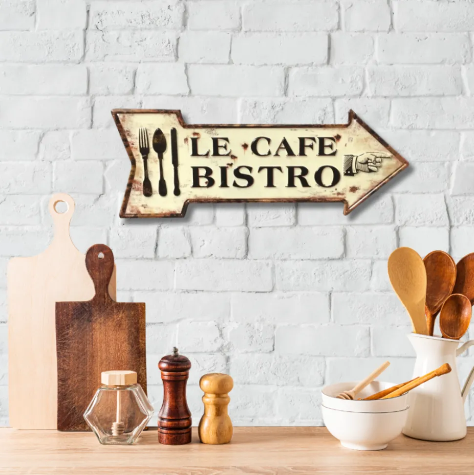 Utilisation : Cette plaque en forme de flèche, ornée de l’inscription “Le Café Bistro”, ajoute une touche rétro-chic à votre décoration. Elle attire visuellement et peut être utilisée pour indiquer l’emplacement d’un café ou simplement ajouter une ambiance chaleureuse à votre intérieur.