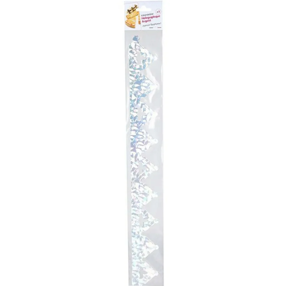 Lot de 2 couronnes aux décors argentés holographiques. Deux encoches pour la fermer, une à 46 cm et une à 52 cm. A vous de faire la galette !